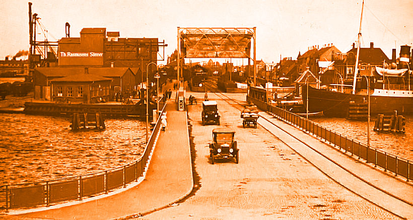 Invitation til åbningen af udstillingen "Fra Pælebro til Glædens Bro og der omkring" onsdag den 1. september kl. 19.30 i Magasinbygningen, Korsør