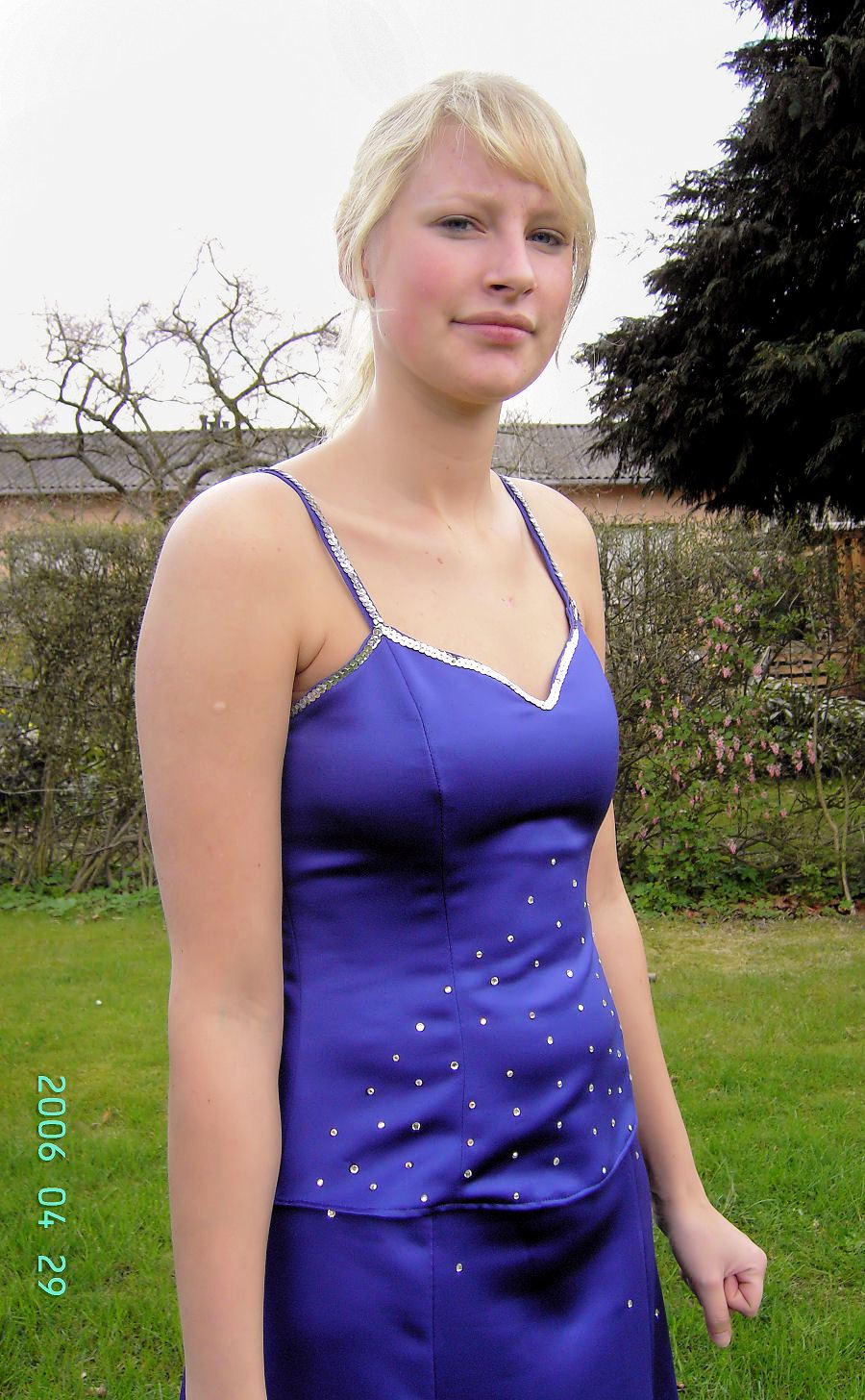 Maria i sin smarte blå kjole som en af hendes mors søstre - jeg kan ikke huske om det er Susanne eller Annette - har syet til hende.