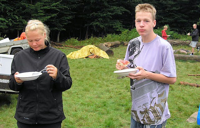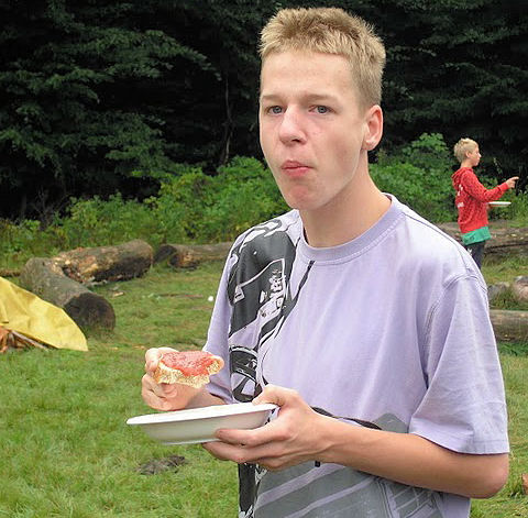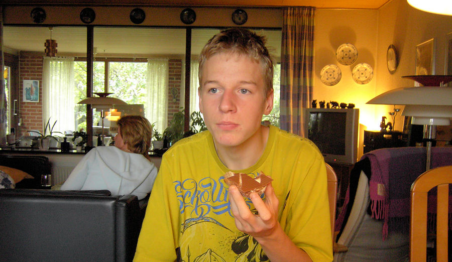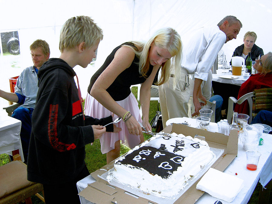 Vi fik faktisk spist den her kage til Marias 18 års fødselsdag. Det var en dejlig dag. Det er typisk for Steffen, at han er nummer 1. til af få kage.
