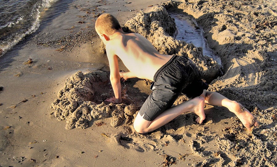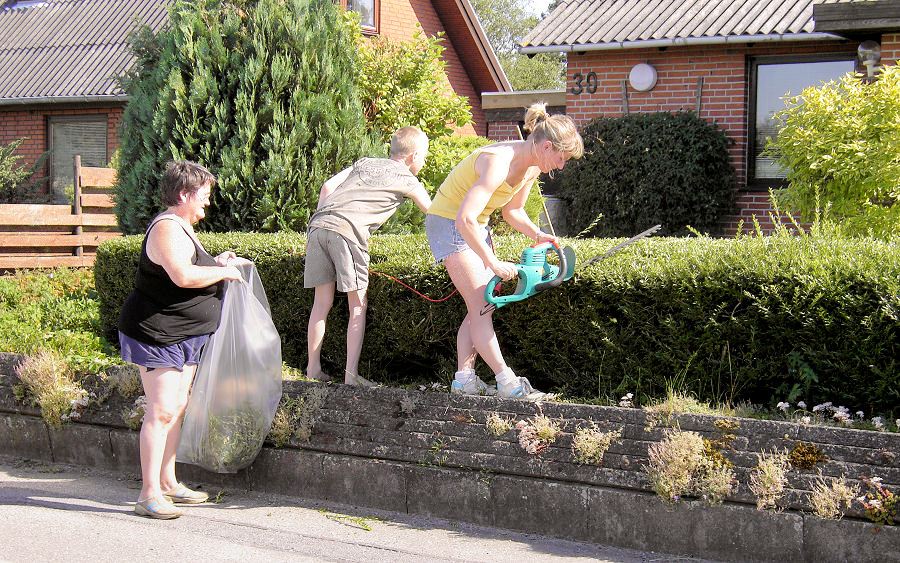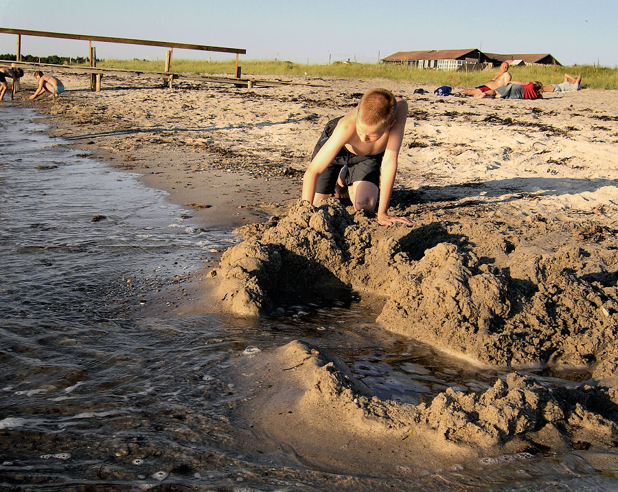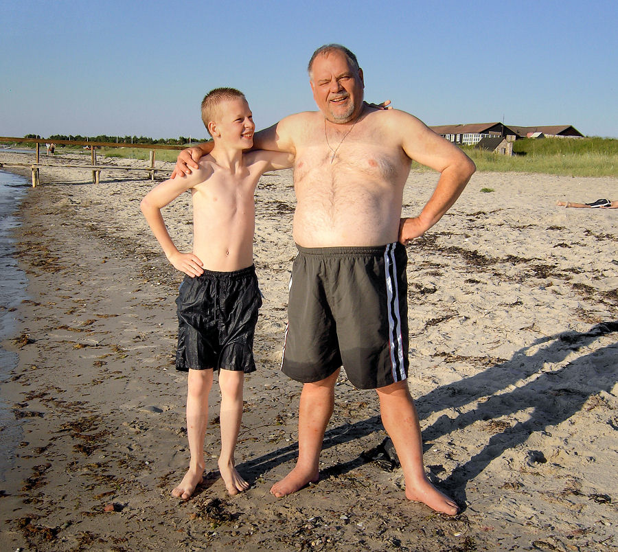 Her er tynde og tykke på stranden. Det var en dejlig sommer, hvor vi badede flere gange om aftenen ude på Knivkær Strand.