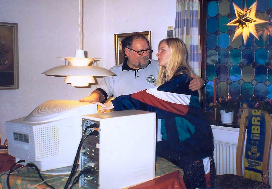 Ham der sidder lige bag dig skaffede en skærm til Marias computer og vistnok også en printer. Han arbejdede på en genbrugsstation i