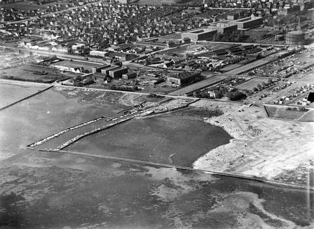 Det her er et meget gammelt luftfoto fra dengang Sundby Sejlklub blevet lavet. Det er her Erik har sin store båd. Kan du huske vores tur med ham og hvor pissevåde vi blev?