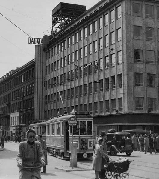 Her nede i den gade hvor sporvognen kører - den hedder Jernbanegade havde min øjenlæge professor Ehlers sin øjenklinik. Dengang ved Danmarks befrielse fik jeg lungebetændelse og efter den tur var jeg så skeløjet så man skulle tro det var løgn. Jeg blev opereret her som ganske lille. Så skelede jeg ikke så meget, men jeg fik ægte dobbeltsyn og er faktisk blind på mit højre øje fordi min hjerne bliver forvirret og lukker af for synsindtrykket fra dette øje. Det er derfor jeg ikke kan gribe noget for jeg kan ikke bedømme afstanden korrekt. Du har sikkert også lagt mærke til, at jeg næsten altid lukker det højre øje.
