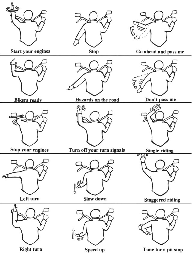 Skulle du blive medlem af en motorcykelbande - så er det godt at kende de her signaler. De kan nu også bruges hvis man cykler i flok.