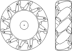 Rullerne er skråtstillede med 45 grader. Når hjulet roterer vil det skabe træk i rullernes længde-retning. Ved at kombinere flere af disse hjul kan man få trækkraft i en vilkårlig retning. Rullerne er formet så hjulets profil er cirkelrund, for at mindske vibrationer under kørslen. Dette hjul kan altså det samme som det forrige, men det passer bedre på traditionelle køretøjer.