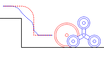 Når et trappetrin krydses vil den trearmede holder rotere 1/3 omgang.