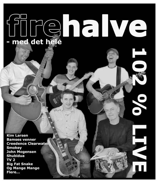 Kopi-bandet ”firehalve” leverer festlig partymusik, og lægger vægt på, at det skal være festligt at spille og festligt at høre på.