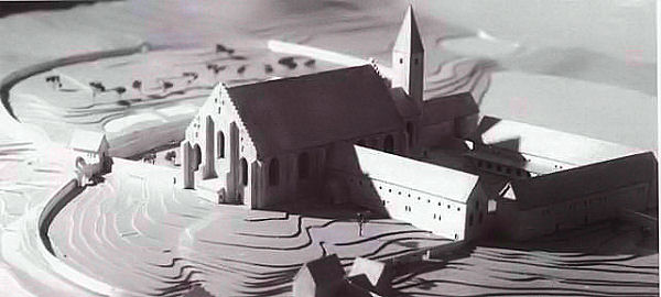 Rekonstrueret model af Mariager Klosters mulige udseende i perioden 1480-1588, set fra nordøst. Men først skal du høre om hvem der satte det hele i gang: DEN HELLIGE BIRGITTA