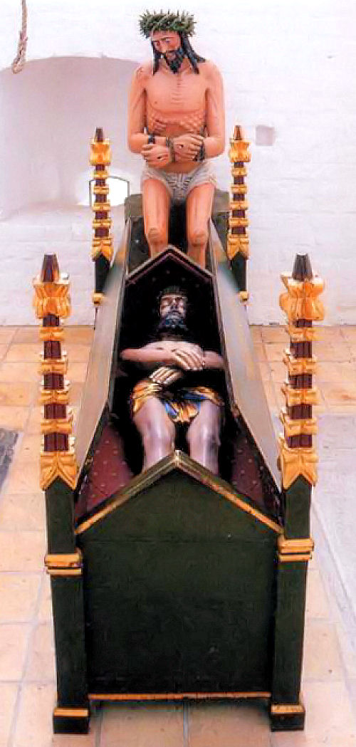 Pragtstykket var "Kristi grav", der blev skænket til kirken få årtier før reformationen: en træskuptur der forestiller Jesu lig lagt i en fornem og bemalet kiste. Figuren spillede en central rolle i forbindelse med påsken. Langfredag aften blev den korsfæstede taget op af kisten og båret rundt i byen i procession, mens der blev spillet sørgemusik. Et regulært begravelsesoptog. Og en procession der stadig udspiller sig på samme måde i de katolske lande.