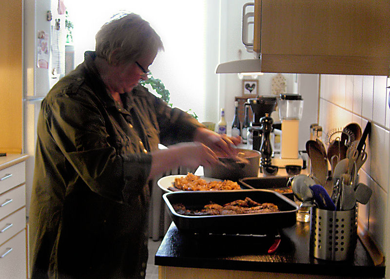Jeg forslår at vi spiser på den italienske restaurant Felicia - som er mit stamspisested i byen, men på vejen dertil kommer vi forbi et stort Jensens bøfhus. "Jeg tror vi skal tage det her i stedet" siger jeg. "Det er langt billigere fordi, man her kan få billige frokostbøffer." Sådan bliver det - vi er alle enige - og vi er heller ikke vildt sultne. Jeg vælger en bøf med tilbehør for 48 kr. og betaler for fri salatbar. Mine medrejsende vil have en større bøf, min er på 180 gram og deres på 200 gram. Deres koster bare 98 kr. Da der bliver serveret er der ingen der kan se forskel - tilbehøret er det samme og bøfferne er der ingen der kan se forskel på. De hævder deres er bedre. Her er en lille baggrundshistorie om hvorfor jeg kender lidt til Ålborg: I slutningen af 1960erne lærte jeg Kaj og Tove at kende her i byen. Jeg havde i 1966 været en af initiativtagerne til D.P.R. - Dansk Privat Radioforening. Under en hverveturne i påsken, hvor jeg holdt i mit folkevognsrugbrød på en parkeringsplads oppe ved Himmelbjerget sammen med et par radiovenner (Alfa9 og Alfa1) - opdagede jeg pludselig, at vi manglede brød og alle bagere var lukkede. Jeg skreg min nød ud over kanalerne. Jeg fik en masse svar fra Ålborg. "Der er ingen bagere der har åbent nu." Pludselig brød en kvindestemme ind - det var Tove - "I skal ikke mangle brød, jeg har lige sat en dej til hævning. Når I kommer frem til Kongensgade i Nørre Sundby kan I tage brødene med Jer. Jeg vil dog foreslå, at I får aftensmad hos os og så kan I lige så godt overnatte her hos mig og min mand Kaj - hvad siger I til det forslag?" Vi takkede selvfølgelig ja tak - det havde været en kold nat på Himmelbjerget. Det blev til et årelangt venskab og rigtig mange besøg. Nytårsaftener, sommerture og udflug- ter. Vi inviterede også vort værtspar på middag i byen og turede rundt på byens beværtninger. Dengang var der rigtig mange skibe ved kajen. Jeg var lige uddannet som radiotelegrafist, så vi har også aflagt besøg på skibene og bællet toldfri sprut med telegrafister. I mange år derefter, når jeg var på vej til Ålborg og kaldte op på walkien - ja, så varede det ikke længe før det lød: "Hvor mange brød mangler du i dag, Luna 1?" Jeg kendte de fleste walkie-folk i byen.