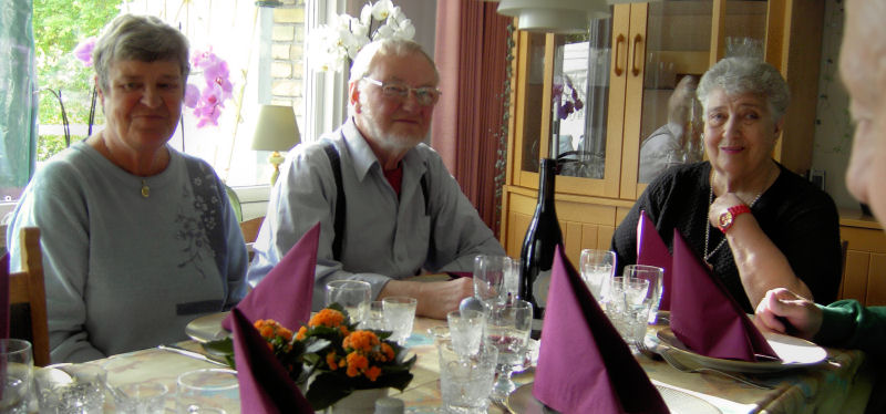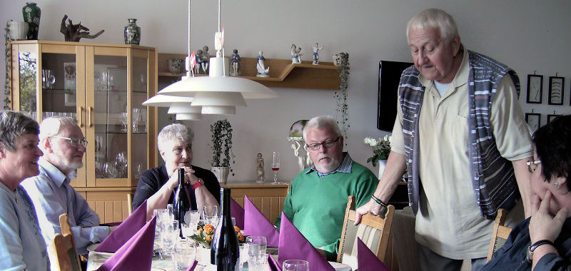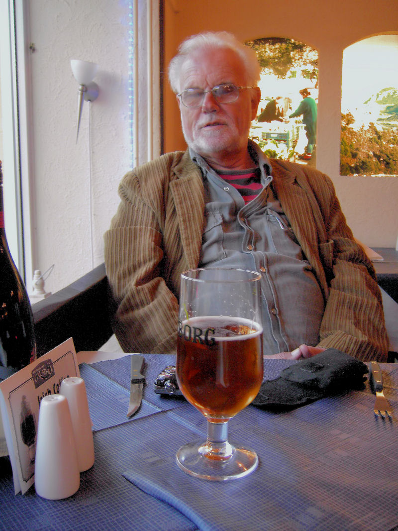 Min ven gennem næsten 50 år Poul. Vi spiser middag sammen inden vi skal til foredrag om forsvarsværker i Danmark. Han skal lige med her - hvorfor nu det - ja, han skal lige se sig selv og så for at minde ham om, at han løb med alle de papirer jeg havde hentet på turist- kontoret i Slagelse. Han havde venligt nok lovet at bære dem i sin lille rygsæk, men han fik aldrig afleveret dem igen. I øvrigt tak for middagen.