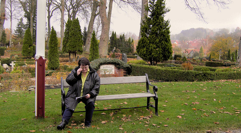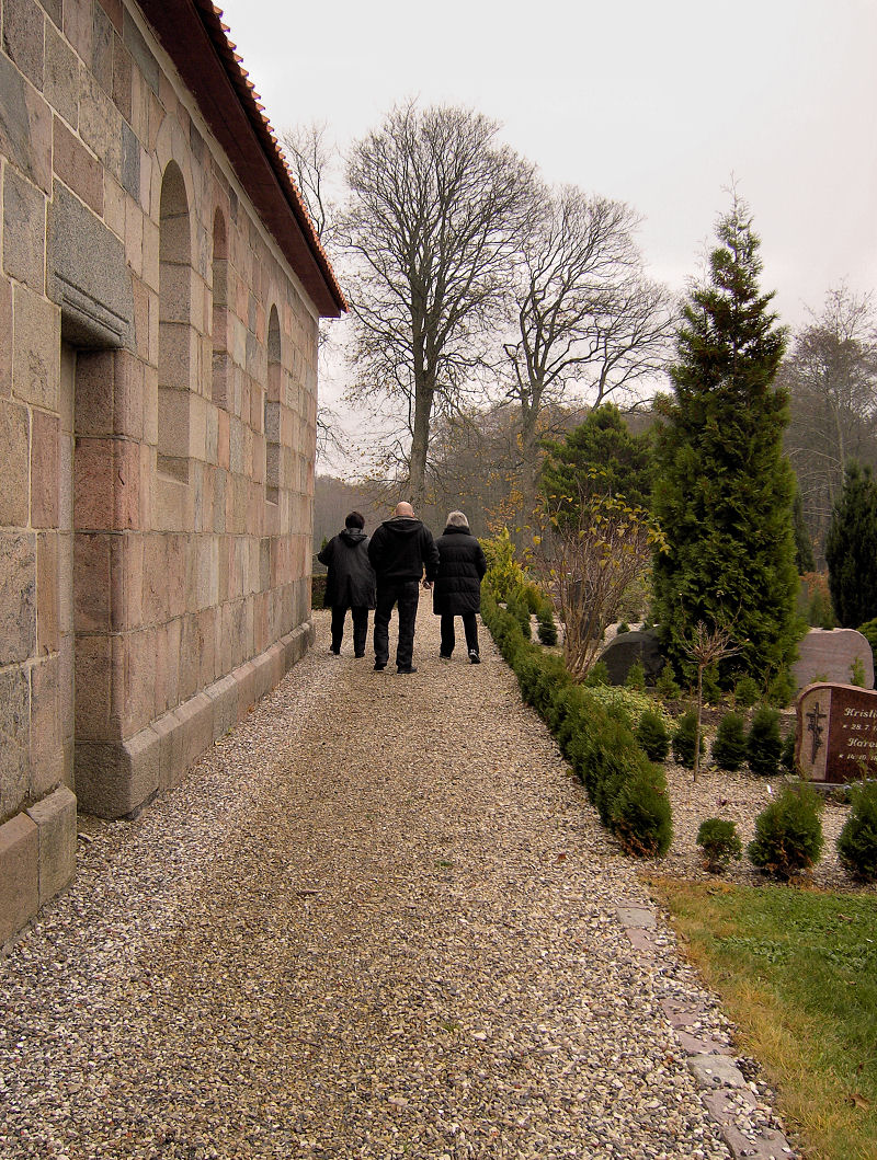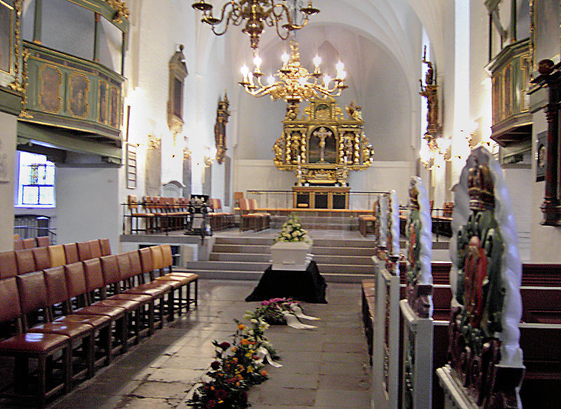 Jeg lister lige alene ind i kirken. Vi kan se udenfor, at der er lagt an til begravelse. De andre vil ikke med ind og er ikke ligefrem vildt begejstrede for min sygelige interesse for kirker. Jeg kan se, at det er ved at være op over - så jeg skynder mig ud igen. Der er ellers meget at se på, men det må blive en anden gang. Man skal ikke deltage i begravelser og slet ikke rende rundt og forstyrre under en sådan og slet ikke, når man ikke kender afdøde.