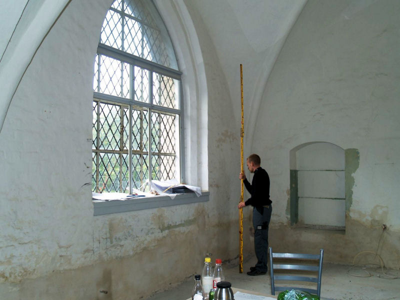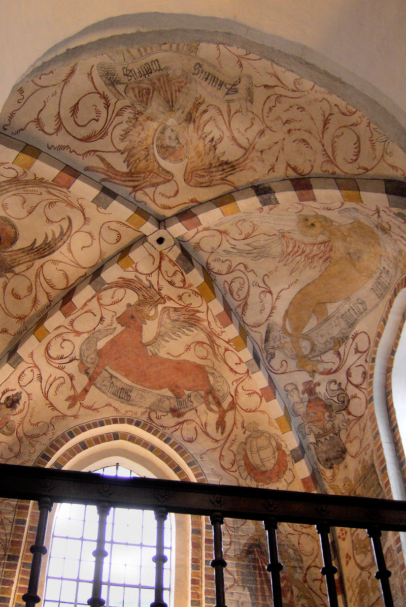 Jeg får lige et enkelt skud af noget kalkmaleriudsmykning i loftet ved indgangen. Det må blive en anden gang.