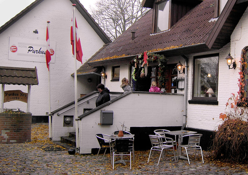 Vi er lige ankommet til Purhus kro, der er lige kommet nye ejere. Kromutter stammer fra hvad hun kalder Sønderjylland - det som jeg kalder Nordslesvig. Vi har talt med vore ven- ner på mobilen - de lå omkring et kvarters kørsel efter os.