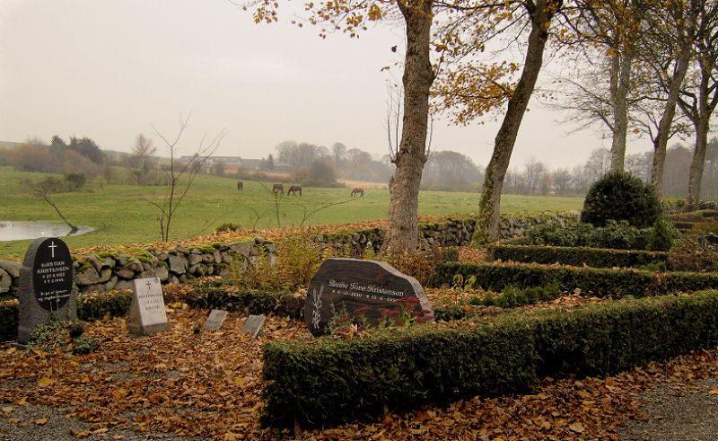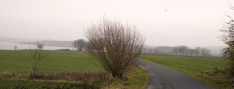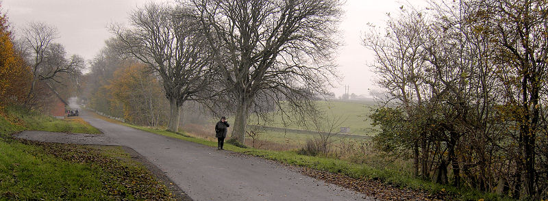 Vi går en tur ud ad landevejen, men min kone sakker bagud. Hun har fødselsdag og hele familien ringer på mobilen med gratulationer og udveksling af sladder. Jeg falder i snak med en kvinde på min egen alder, der går med en plasticpose og jeg gætter på, at hun er ved at samle ting ind til juledekorationer. Det viser sig at være sandt. "Er der et sted hvor der er mos til mospuder?" "Ja, der er lidt et stykke oppe ad vejen på den anden side, men der er ikke det store sus tilbage." Vi snakker sammen i 1½ time. "Jeg bor nede i det gule ved vejkrydset. Her har jeg boet i 25 år. Jeg kommer oprindelig fra København." "Er du faldet til?" "Det gør man aldrig rigtig herovre. De lokale lukker ikke lige fremmede ind i varmen, men det går." Mens vi står og snakker lander der to biler på parkeringspladsen. "De holder ind her for at bytte varer eller hvad de nu har gang i." bliver jeg belært. Jeg fortæller om de udborede puch-maxi knallerter i Korsør med afmonteret motorbremse og en plastmælkekasse på bagagebæreren. Det er stort set samme aktivitet. Landskabet er virkelig smukt her på egnen.