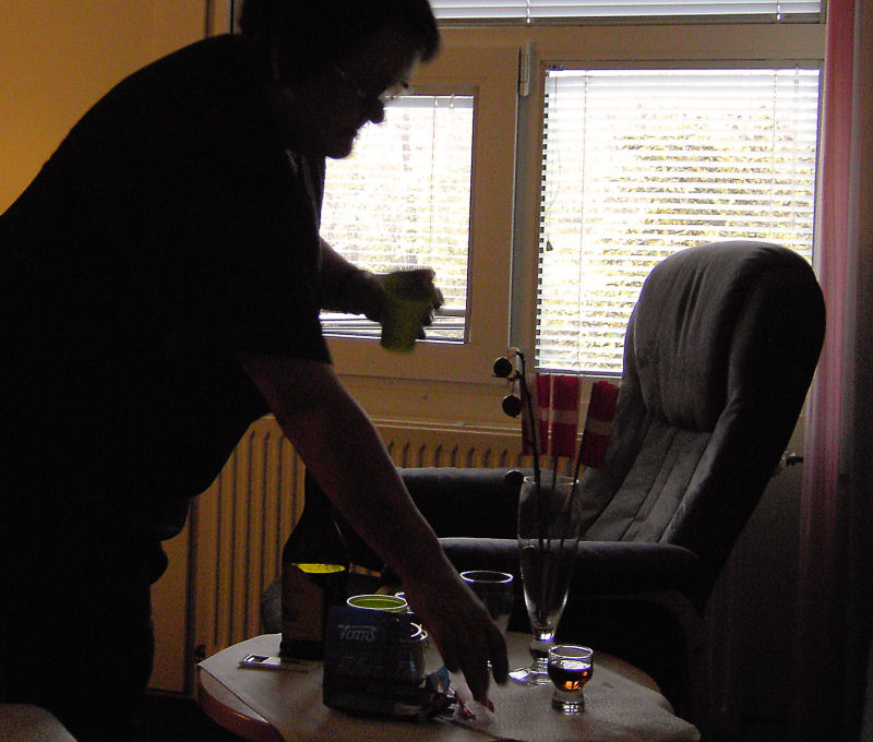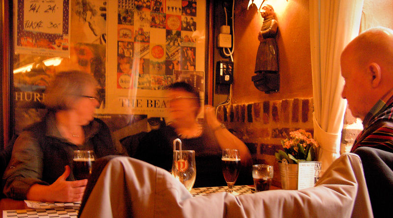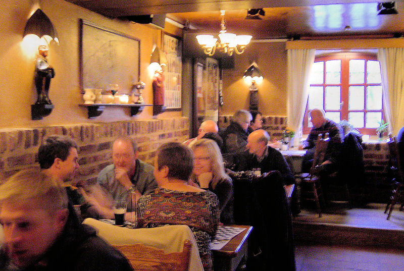 Nu skal man jo ikke være en konsekvent fornægter af det åndelige, men mennesket lever jo ikke af ånd og ord alene, der skal også lidt mad og drikke til, hvis det skal være rart. Vi er gået til den nærmeste kælderbeværtning. Sneøllene kan vi ikke få endnu - først til aften, men vi bliver anbefalet af tjeneren at prøve en lokal Bock - og den anbefaling er vi glade for.