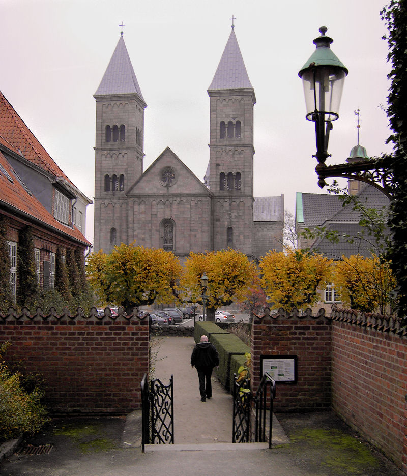 Viborg Domkirke. Vi har alle set den, men nu er vi her så vi vil lige kaste et blik indenfor går man lige med til. De gider heller ikke høre på mine foredrag - selv om jeg er særdeles velbevandret i stoffet. "Jeg vil gerne fortælle Jer om freskomalerierne af Skovgård og hvad de forestiller og så videre." - næh, tak de skal ikke nyde noget foredrag.