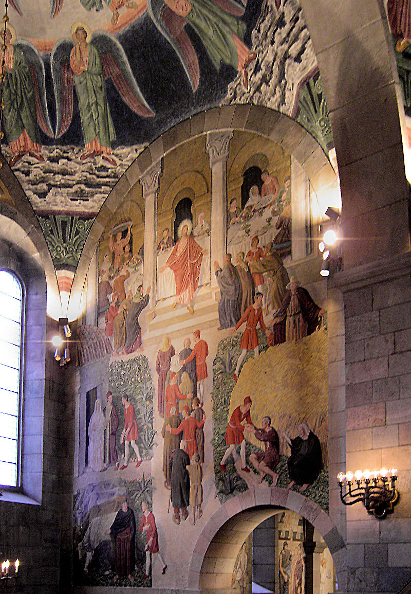 Her er flere ting koblet sammen i en komposition. Det er dog den store nadver du ser her. Andetsteds kan du se Jesus og de tolv disciple gnaske lammesteg.