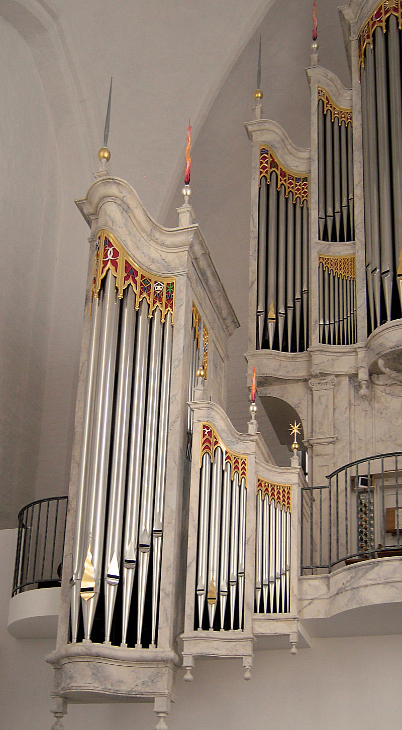 Det her orgel kan jeg se er helt nyt. Det har nogle utroligt smukke dekorationer. Det orgel må være noget ganske særligt og det er det. Det er af nyere dato og har kostet den net- te sum af 13,5 millioner kroner. Jeg ville utroligt gerne høre det spille. Det må ske en an- den gang og jeg finder ude i våbenhuset et kirkeblad m.v., der fortæller mig at man for en billig entre (typisk 50 - 100 kr.) kan høre orgelkoncerter. Jeg vil ikke give en beskrivelse af orglet - der findes nemlig en lille tryksag fra orglets indvielse, som fortæller det hele - bare klik her: orgel_brochure_maj_2010.pdf