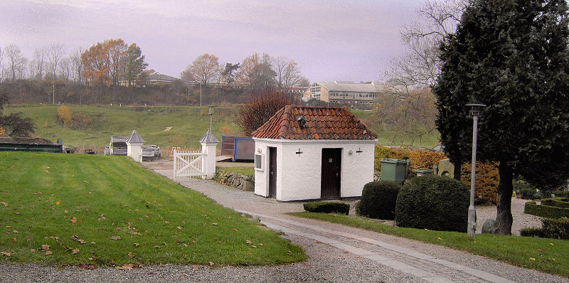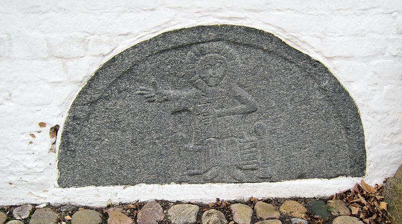 Nå, det hedder pladsen - kirkestræde udgår også herfra. Det er nok at tage munden vel fuld - vi kan da se, at muren trænger til mange kærlige hænder.