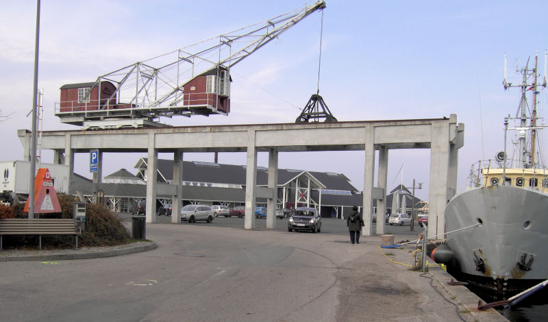 Her ser vi den fredede saltkran. Bagved ser vi saltmuseet. Det kostede en mindre formue at aflægge besøg der og vi skulle ikke bade i "Det døde hav". Det er simpelthen optrækkeri. Man kan se en saltmine derinde, hævder man. Vi har set en rigtig en i Hallein i Østrig syd for Salzburg. Her kunne man køre på træslidsker ned i dybet så man blev ganske varm i numsen - se underjordiske søer og få fortalt, at minen strakte sig helt ind under Hitlers bjergvilla i Obersalzberg, som ligger i Tyskland. Så der var en grænsepæl dernede. Vi fik masser af salt med hjem. Her kan man også købe salt - sydesalt - i små poser til en mindre formue.