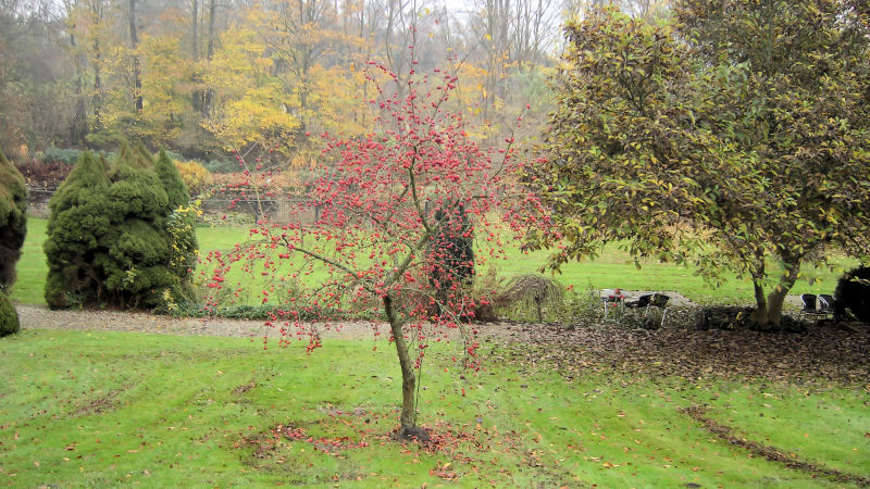 Vi tager afsked med "Kundskabens Træ" udenfor vort værelse. Æblerne er sure og små og "Livets træ" kan jeg ikke finde. Jeg havde ellers gerne skåret mig en podekvist.