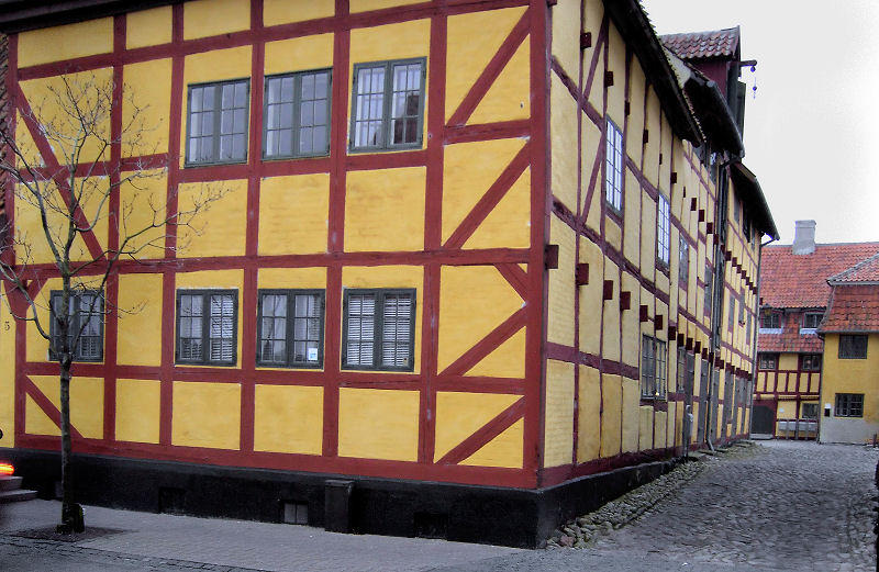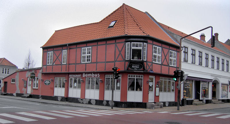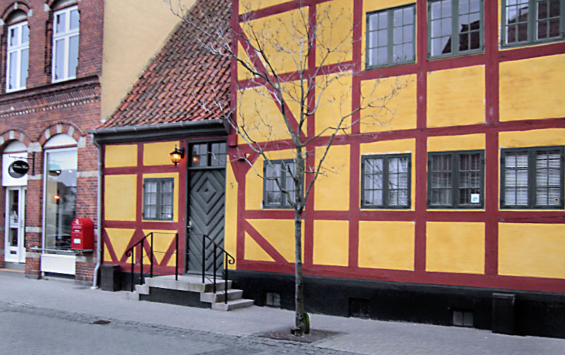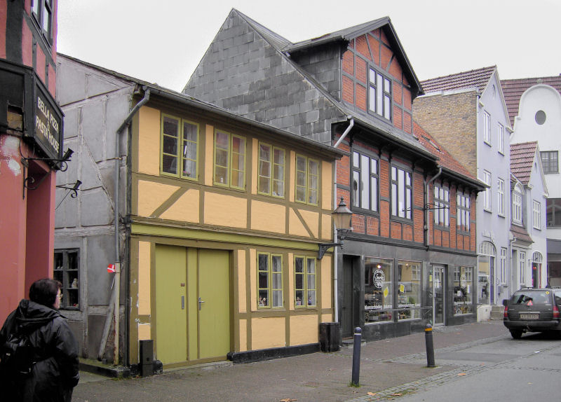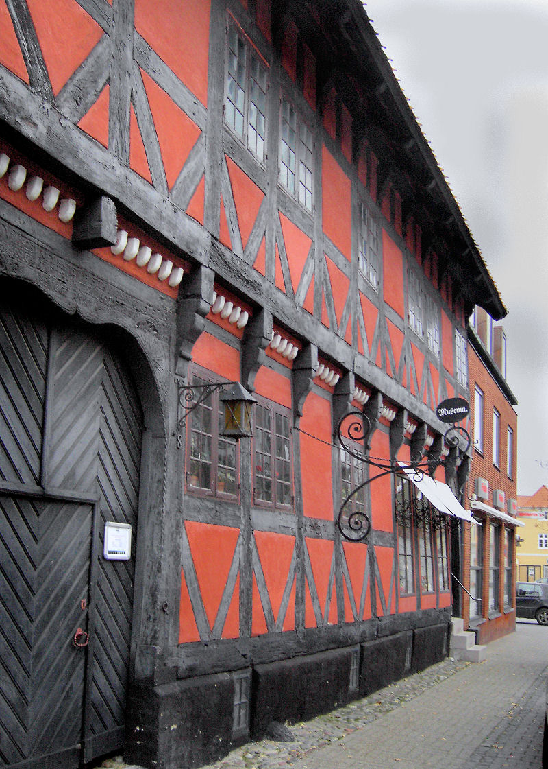 Her vi et gammelt bindingsværkshus byens museum her i Langegade.