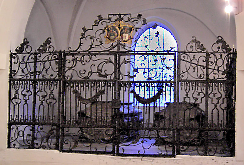 I et sidekapel henstår et par sandstenssarkofager, der er leveret af Johan Thiel i Flensborg, formentlig indeholder de jordiske rester af et par af den herskende overklasse på egnen - det er Peder Juel og Birgitte Levetzau. Et levn fra fortidens klassedelte samfund, hvor alt blev målt i rang og stand. Det er smedejernsgitteret jeg er faldet for.