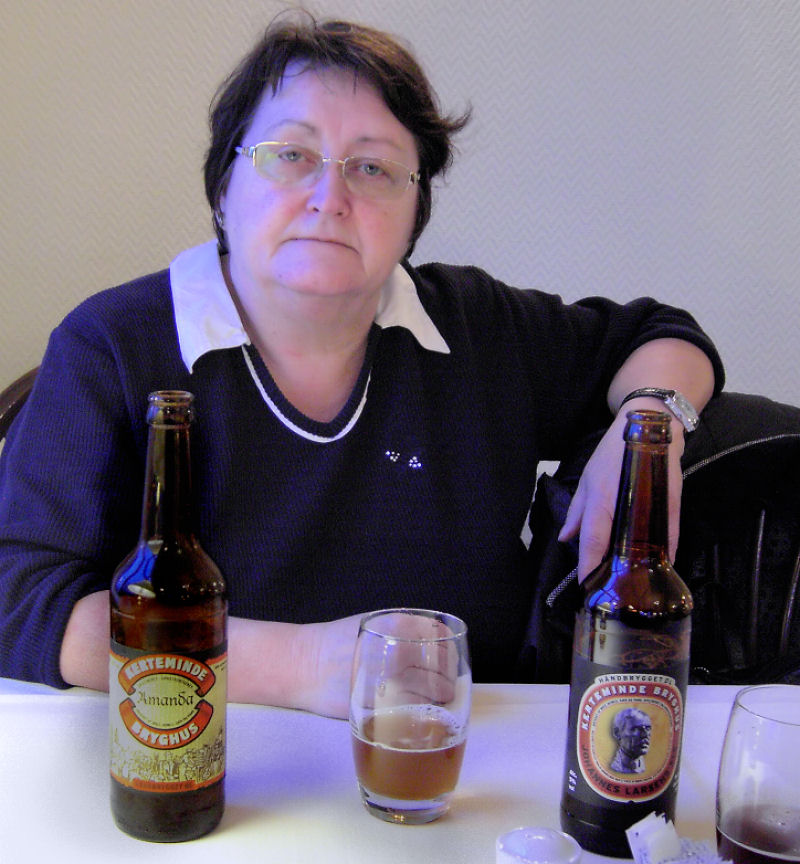 5,0% vol. Kerteminde Bryghus´ FRITZ SYBERGS PILSNER er en undergæret øl brygget på tre malttyper, en humletype, gær og vand. Ingen tilsætningsstoffer. Ufiltreret og upasteuriseret. "Giv mig en bajer... jeg vil berømme det ravgule Øl fra Fad." Linjerne stammer fra Johannes V. Jensens digt "Ved Frokosten" fra 1906. Linjerne "gendigtede" vennen Fritz Syberg i et mesterligt maleri med samme titel. Busten af maleren Fritz Syberg (etiket forside) er skabt af Johannes V. Jensen. Øllet er karakteriseret ved en kraftig type med god rund fyldig smag af malt og humle. Skøn gylden farve og flot lyst skum. Nydes såvel alene som til et godt dansk frokostbord. Bør serveres ved 6-8 grader. Vi drak et par af disse øl på den måde, at vi købte flere og så delte så vi begge kunne smage. Der er mange flere typer, men det her var de vi prøvede af. De var udmærkede, men prisen var alt for høj. Inge-Lis førte bilen, så hun måtte højst indtage en enkelt. |