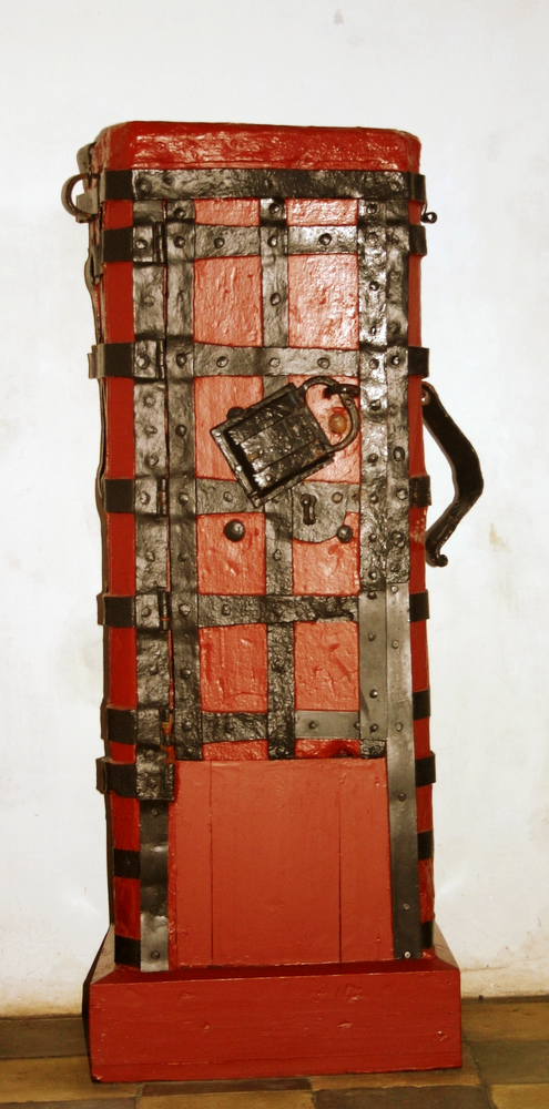 Monstransskab I dag findes det gamle monstransskab stadig. Inde i kirken. Det er faktisk en form for pengeskab, hvor man opbevarede den såkaldte monstrans - en ofte kostbar opsats, hvor der var plads til hostien. Denne, der er det samme som vore dages alterbrød, blev inden gudstjenesten placeret i hostien, hvorefter det blev båret frem for menigheden og konsekreret. Det er den handling, hvor præstens ord forvandler "brød og vin" til Jesu kød og blod. I modsætning til den protestantiske kirke, hvor brødet og vinen er symboler. I den katolske tid foregik en lang række messer på latin. Når præsten holdt brødet frem, udtalte han sætningen "Hoc est corpus Christi". En sætning, der var svær at forstå for menigmand. Men at der skete et under, det forstod man. "Hoc est corpus..." blev efterhånden til "Hokus pokus". Man kunne jo heller ikke have, at mus eller nisser gnaskede brødet i sig om natten. ca. 1400
