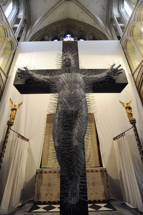 'Die Harder'-statuen af korsfæstelsen er lavet af smeltede metalbøjler til tøj og udglattede kroge. David March er kunstneren, som har undfanget idéen til denne utraditionelle statue. Jesus skriger af smerte og har et yderst forpint ansigt. Statuen kan ses i Londons Southwark Cathedral indtil slutningen af påsken, 2012. Dekanen ved katedralen har sagt om statuen, at "denne dramatiske skulptur menneskeliggør Jesu smerte, da han hang på korset."