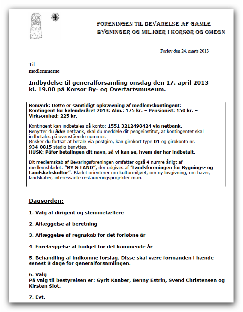 VOR FORENING ER MEDLEM AF BEVARINGSFORENINGEN - SÅ DERFOR ER DU SOM MEDLEM AF VOR FORENING OGSÅ VELKOMMEN TIL AT DELTAGE I GENERALFORSAMLINGEN onsdag den 17. april 2013 kl. 19.00 på Korsør By- og Overfartsmuseum Indsat af Webmaster den 25. marts 2013