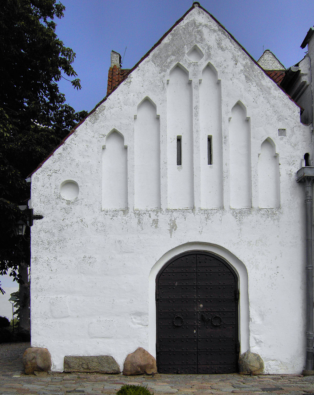 Sune Ebbesens frådstenstavleI våbenhuset, over døren ind til selve kirken, bør man bemærke de to tavler med latinsk indskrift: "Ebbe Skjalmsen og hans hustru Ragnhild byggede her en kirke, som hans søn Sune senere opførte i sten til Guds, Sanct Marias og Sanct Laurentius' ære."