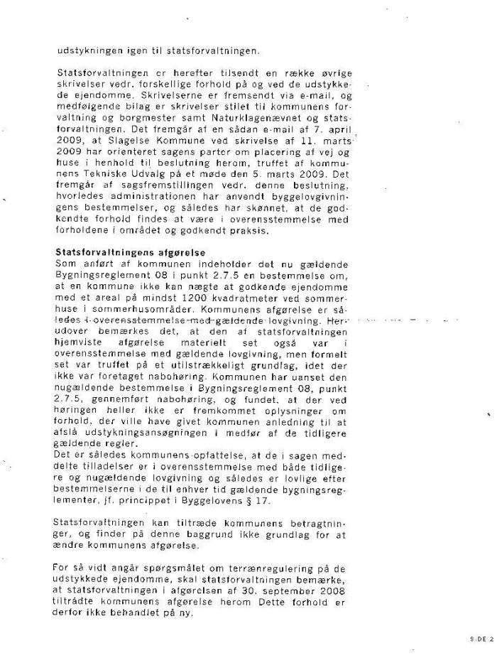 Jeg mener derfor at Statsforvaltningens afgørelse om tilladelse til udstykning i 3 sommerhusgrunde er tvivlsom. Derfor har jeg klaget til ombudsmanden over udstykningen som den foreligger.