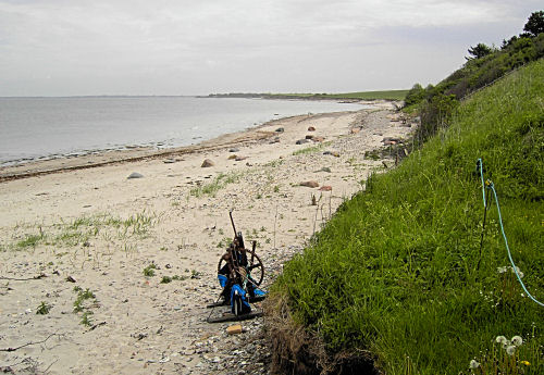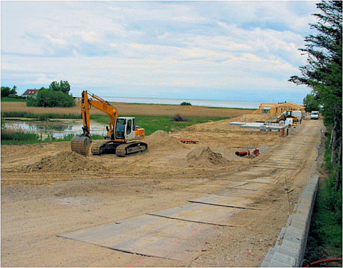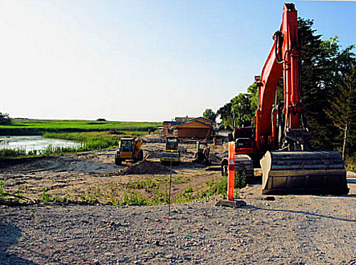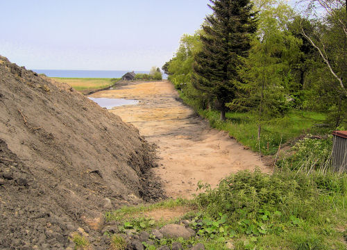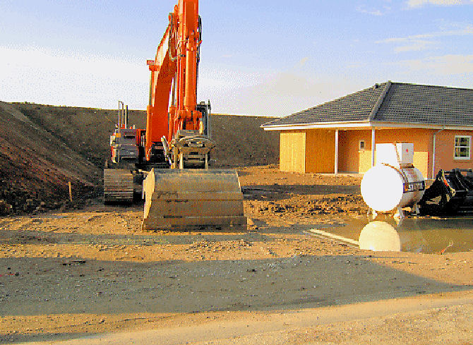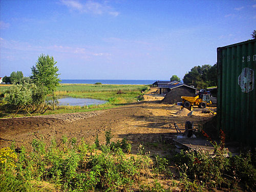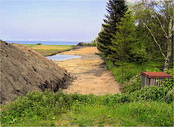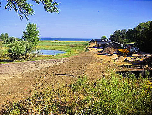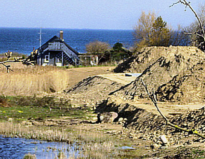Terrænreguleringer. Jordbjergene tættere på. Huset helt nede ved strandkanten er Gry´s og har ligget der i mange år. Lovligt opført.
