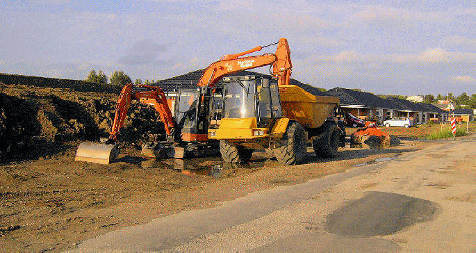 Terrænreguleringer. Området ombygges. Hvad skal mon de jordbjerge her?