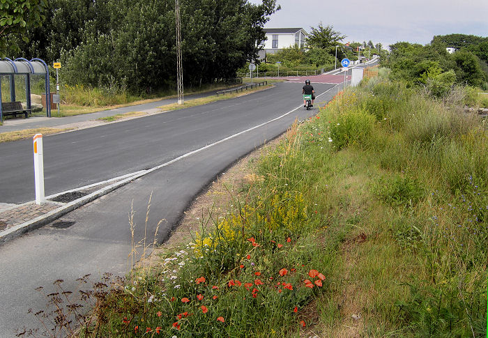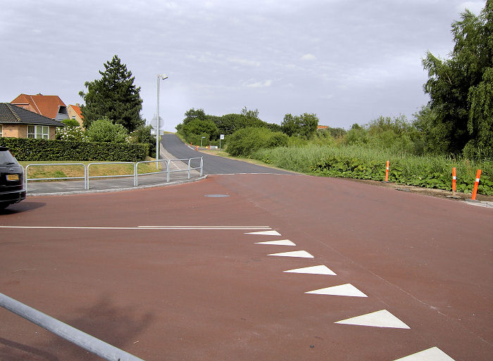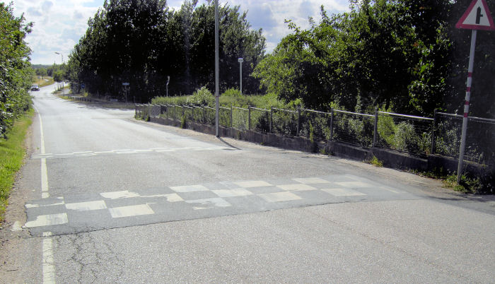 SSå er vi nede ved Rødhøjvej og ser mod øst. Vi slap for et bump.