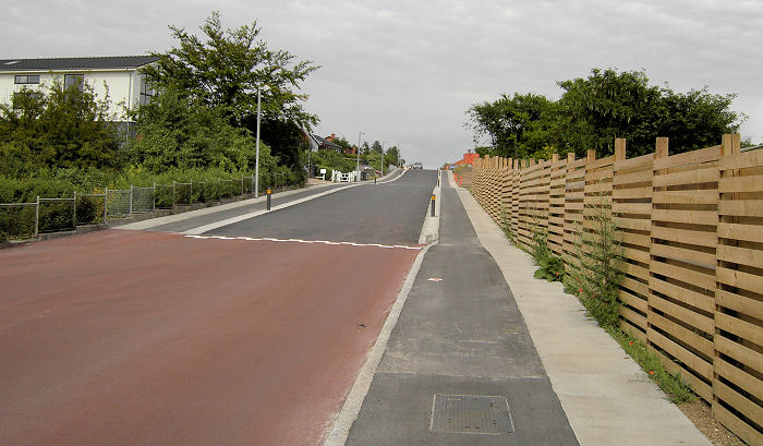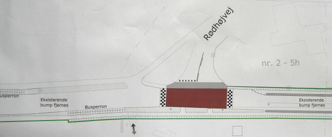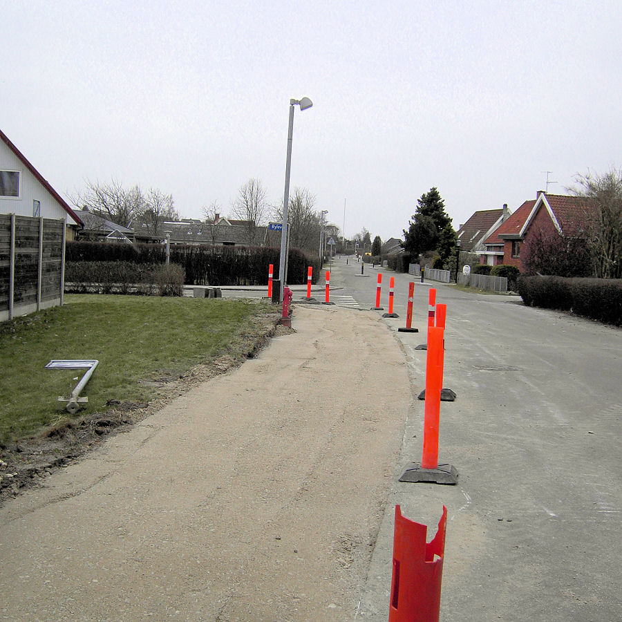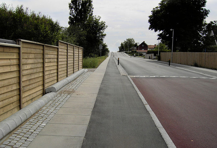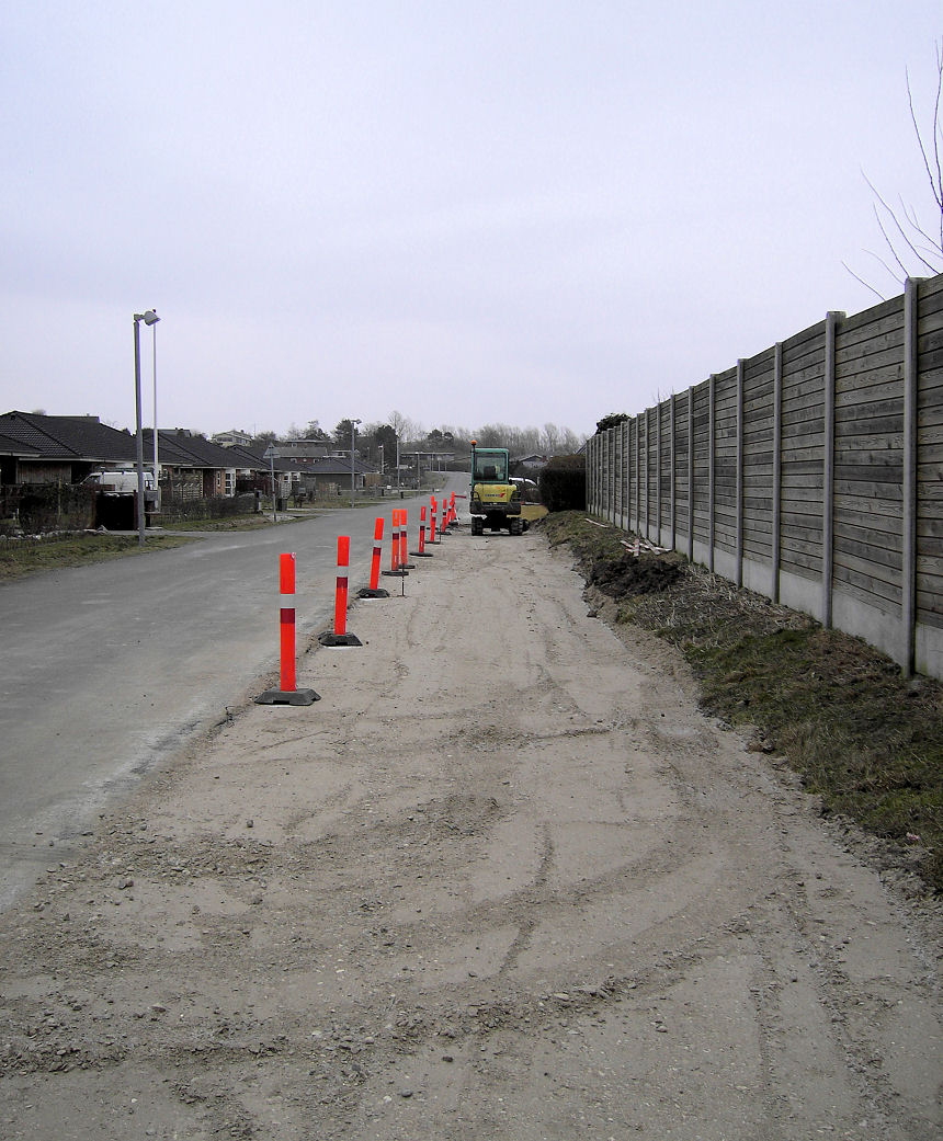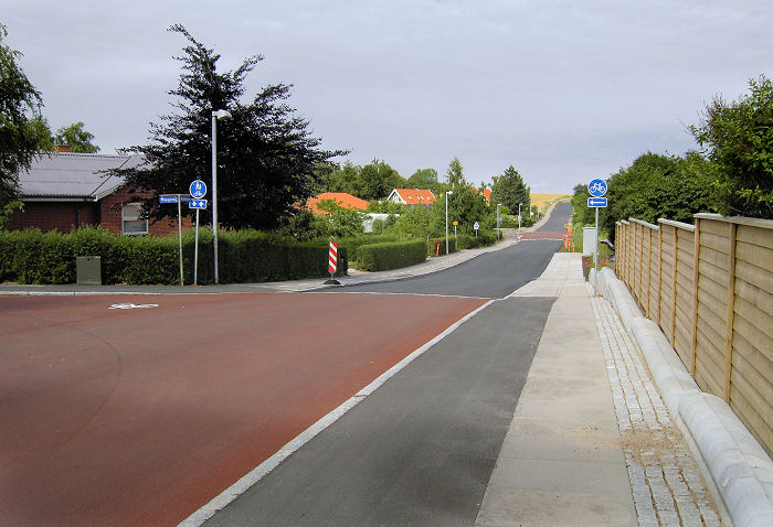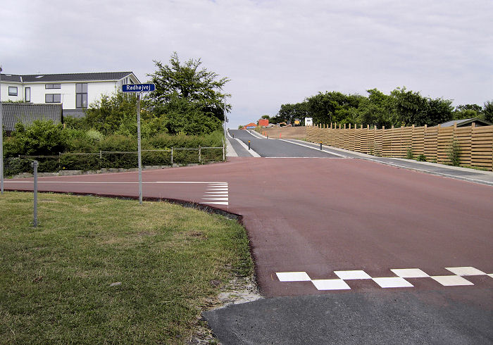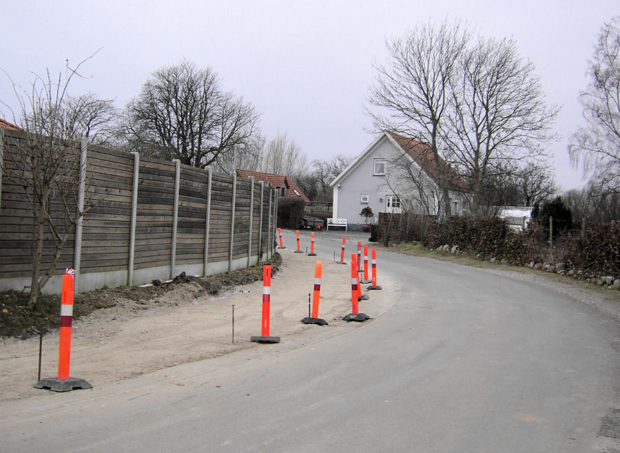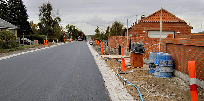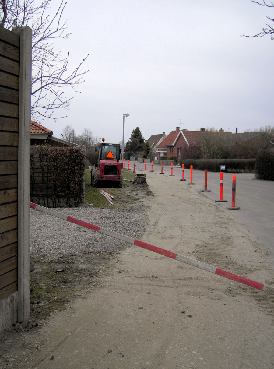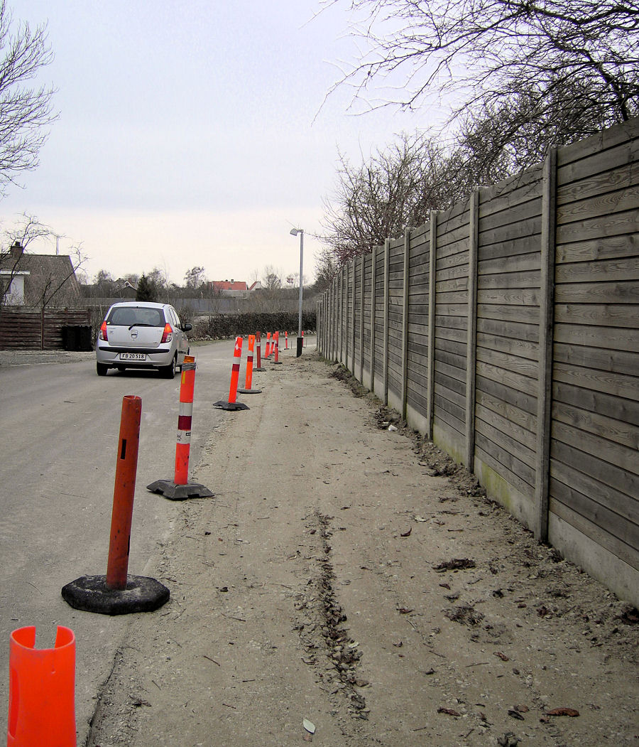 Der burde også være en fartbegrænsning her på 40 km/t. Ikke en stillezone, men røde påbudsskilte. Et par af de værste trafikulykker i årenes løb er faktisk sket her i svinget. ... det nytter faktisk af og til, at vor forening blander sig i tingene! RETTELSE modtaget den 5. april 2011 Nu sendte jeg denne hjemmefra og der er en fejl i den. Fortovet får asfaltbelægning ligesom de eks. fortove på Rødhøjvej og på Rylevej. Jeg huskede forkert. Asfaltbelagte fortove har den fordel, at ukrudtet har sværere ved at komme op – bagdelen er, at evt. nye ledninger trækker grimme spor, da de sjældent er brede nok til at hele asfalten renoveres.