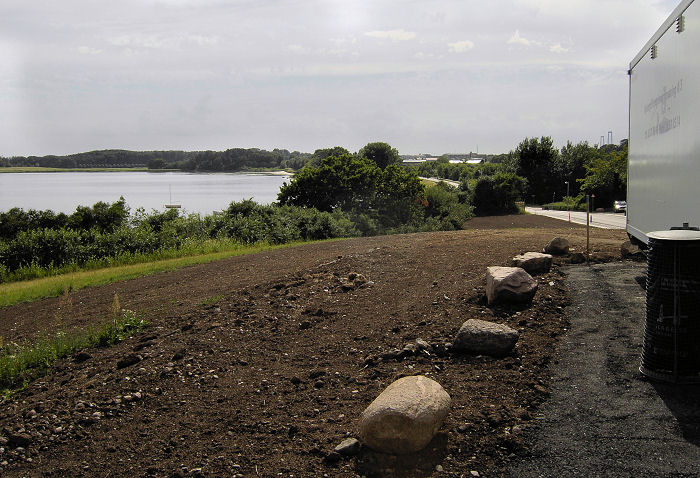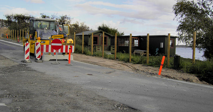 Beplantning fjernet. Vejen/cykelstien udvides mod vandside.