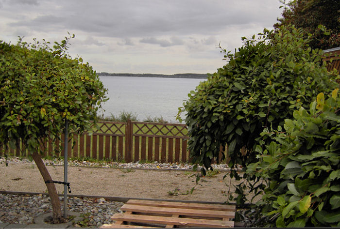 Et lille smugkig ud over vandet fra ejendommen oppe ved parkeringspladsen.