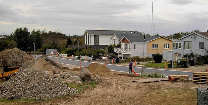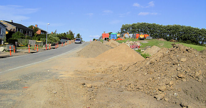 ... så venter vi bare med tålmodighed på, at det hele bliver færdigt, så vi kan undgå at den tunge trafik drøner ad Rødhøjvej, nu hvor vejen er spærret for lastkøretøjer under vejarbejdets udførelse.