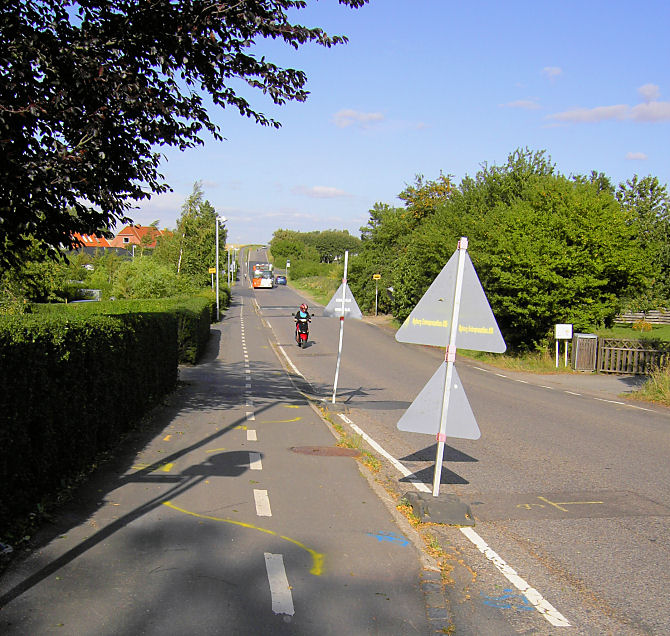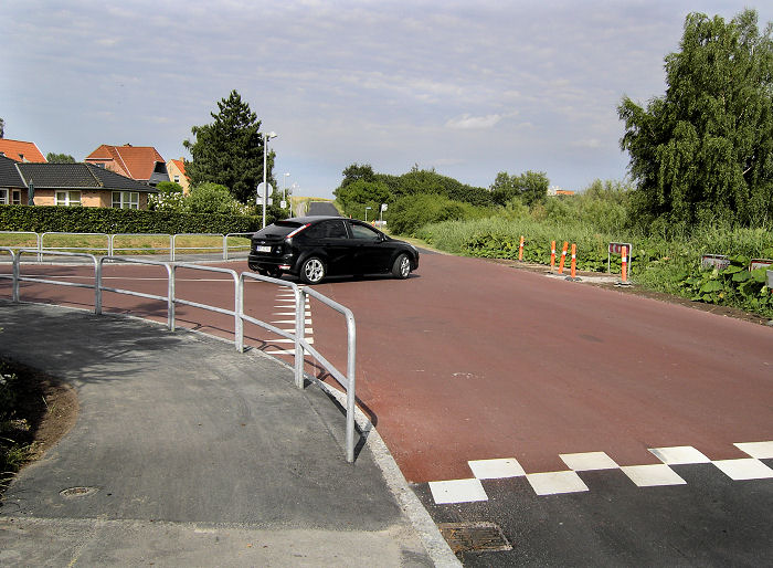 Bemærk at man ikke fører cykelsti og fortov længere frem i vandsiden end til Maagevej. Vi bedømmer det som et trafikalt færdelssikkerhedsmæssigt problem, at cyklister skal krydse vejbanen her.