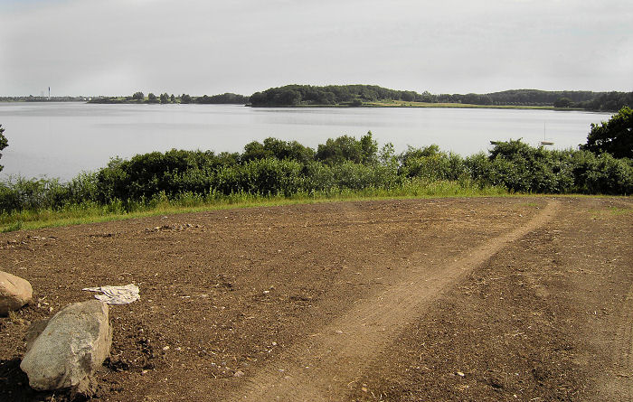 Der er fældet en hel del bevoksning heroppe, hvor parkeringspladsen kommer. Området er beskyttet af strandbeskyttelseszonen. Der er givet en dispensation. Vi har naturligvis ikke klaget over den. Lige netop HER forholder det sig sådan, at området er udlagt som rekreativt grønt område for Rødhøjvejskvarterets beboere. For at vi kan bruge det til noget, vil vi i første omgang gerne have sat et bord med bænke og et affaldsstativ op her. Måske kunne man også komme ned til vandet. Det er Willy i vor bestyrelse, der er i gang med at udpege steder i hele vort område, hvor der trænger til bænke (og nogle steder et bord). De sorte rør ligner nogle lakridsstænger, som ungerne gnasker i sig på sekunder.