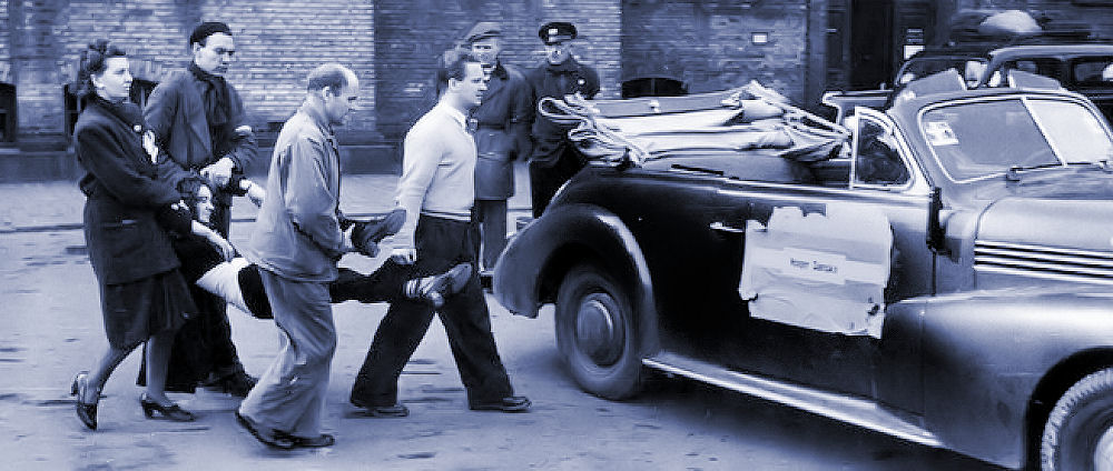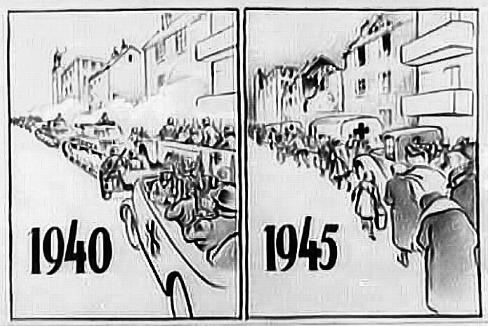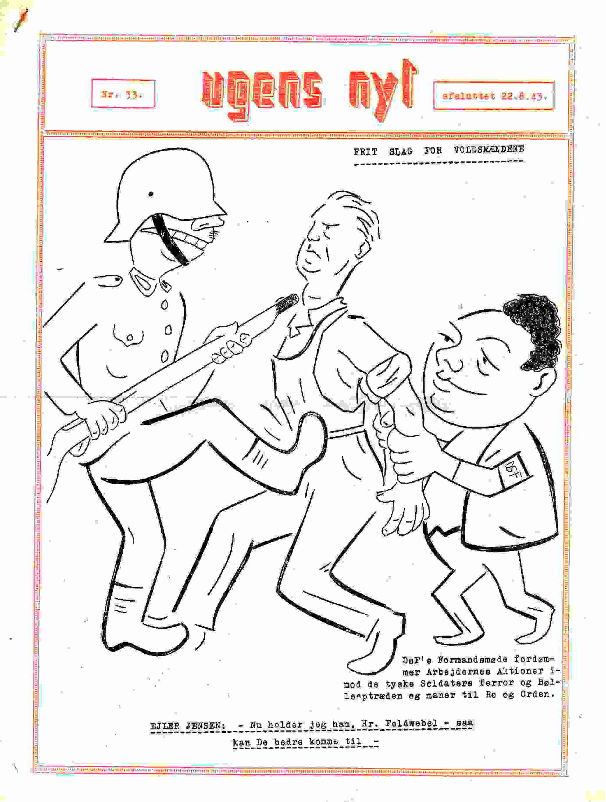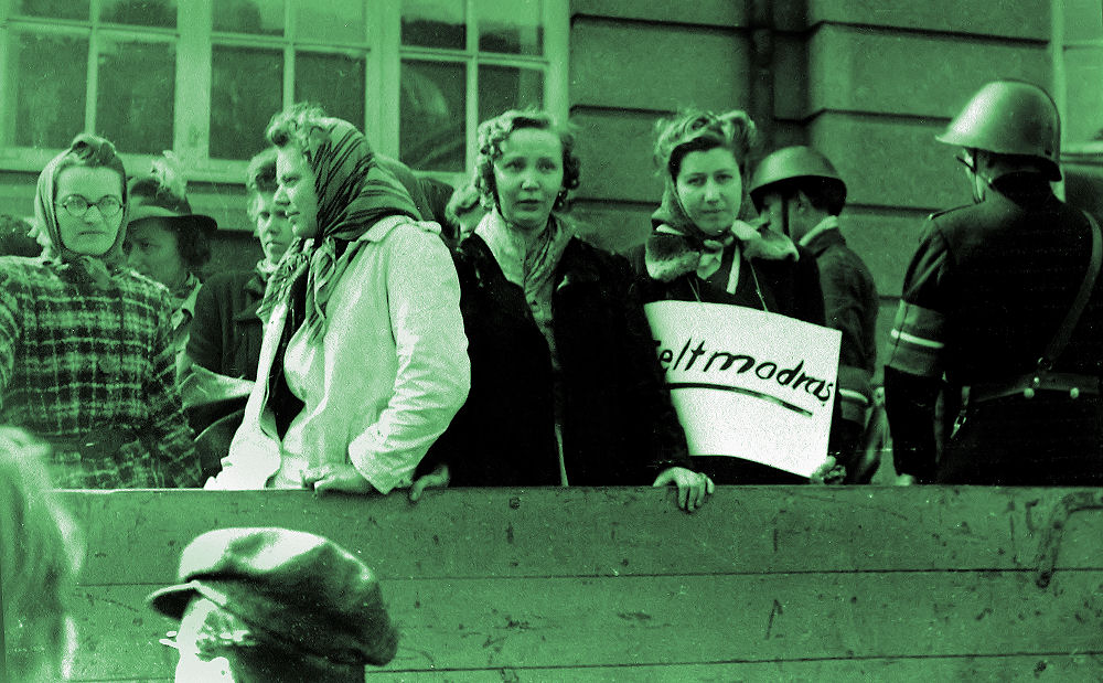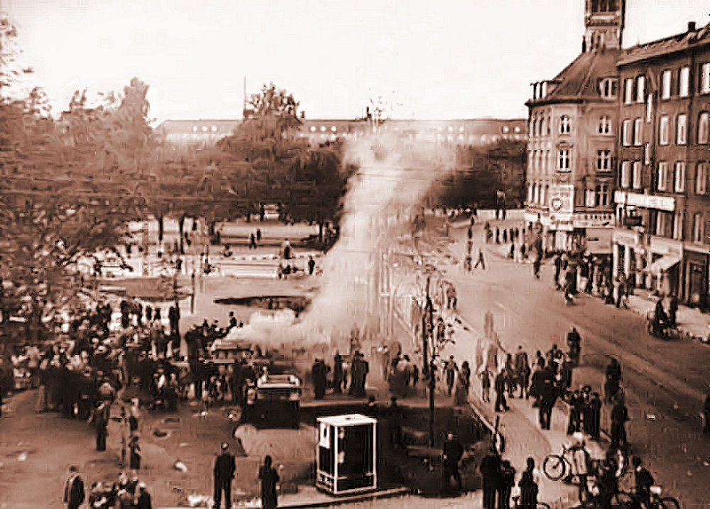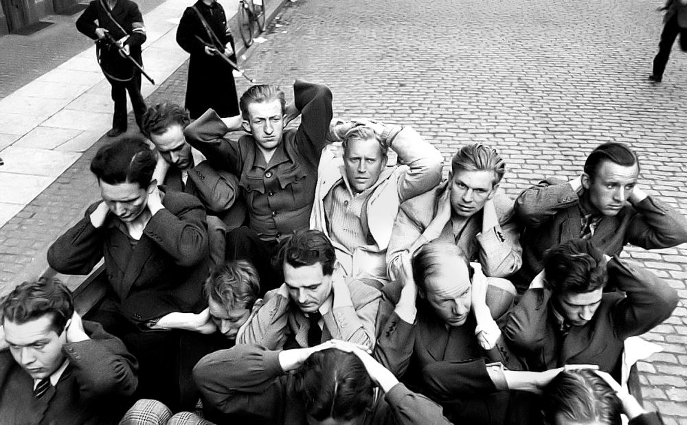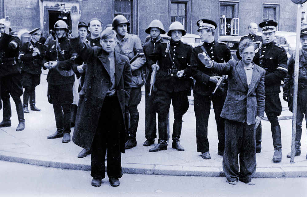 Vi er på Hellerup Station. Vi tager afsked med den første sending danskere der har meldt sig til tysk militærtjeneste i Frikorps Danmark. Tyskland er gået i krig mod Sovjetunionen og Danmark er mere end villigt gået med til at forfølge danske kommunister. De bliver for en stor dels vedkommende interneret i Horserød lejren i Nordsjælland. Man lover dem, at de nok skal få et varsel så de kan slippe væk, hvis regeringen går af den 29. august 1943. Man har ingen problemer med at røvrende dem. Grundet at tyskerne ikke ved at Horserødlejren består af 2 afdelinger slipper en del væk i allersidste øjeblik. Resten bliver sendt til udryddelseslejren Stutthoff. De danske politikere, der havde ansvaret for denne ondskabsfulde nederdrægtighed er der aldrig gjort op med. Socialdemokraterne havde gennem sin egen efterretningstjeneste AIC - ARBEJDERNES INFORMATIONS CENTRAL - igennem mange år holdt øje med kommunisterne og registreret dem. De tålte ikke konkurrence fra de ægte socialister. Så de der var røde og fagligt aktive og hvis de tilmed var kommunister blev de spottet ud, registreret, holdt løbende øje med og chikaneret, hvis man kunne komme af med det. Det var betroede socialdemokrater, der var med i denne infame tjeneste. Den har fungeret helt op i 1970erne. Først var det kommunisterne, så SF'erne, så Venstresocialisterne og i dag ville det have været enhedslisten. Da tyskerne efter overfaldet på Sovjetunionen bad om at få arresteret nogle få ledende danske kommunister gav statsminister Stauning ordre til, at alle skulle pågribes. Det bevis har vi i form af en aflytning af hans telefon. De lykkedes med hjælp fra et tyskvenligt og nævenyttigt dansk politi at anholde næsten 500 kommunister. Selv 3 kommunistiske folketingsmedlemmer gik man på klapjagt efter. Politikerne vedtog lige i hast en lov, der gjorde det ulovligt at være kommunist og som konfiskerede partiets formue. Kommunisterne som var de første og den største og mest effektive modstandsgruppe under besættelsen vidste, at socialdemokraterne kunne de ikke stole på. De havde forberedt sig og gået i illegalitet. De havde lavet et hemmeligt trykkeri, dækadresser og etableret et net af celler. De var ellers efter grundlovens sikret immunitet. Jeg har tit gået og tænkt på, hvor mange kommunistiske modstandsfolk, der er blevet stukket af socialdemokraterne til tyskerne. Det kan jeg selvfølgelig ikke bevise noget som helst om, men jeg kan lægge to og to sammen og kan ikke frigøre mig fra tanken. Regeringen havde opfordret de unge mennesker til at deltage i dette korps af østfrontvillige. Folk i det danske militær fik besked om, at de kunne træde uden for nummer og senere vende tilbage og bevare deres ansættelse i det danske forsvar og deres pensionsrettigheder. Sådan kom det ikke til at gå. De blev dømt i retsopgøret til minimum 4 års fængsel efter en lov med tilbagevirkende kraft. Tab af borgerlige rettigheder for bestandig og deres optjente pension i forsvaret samt konfiskation af deres formue, hvilket især ramte de der var gift og havde børn.