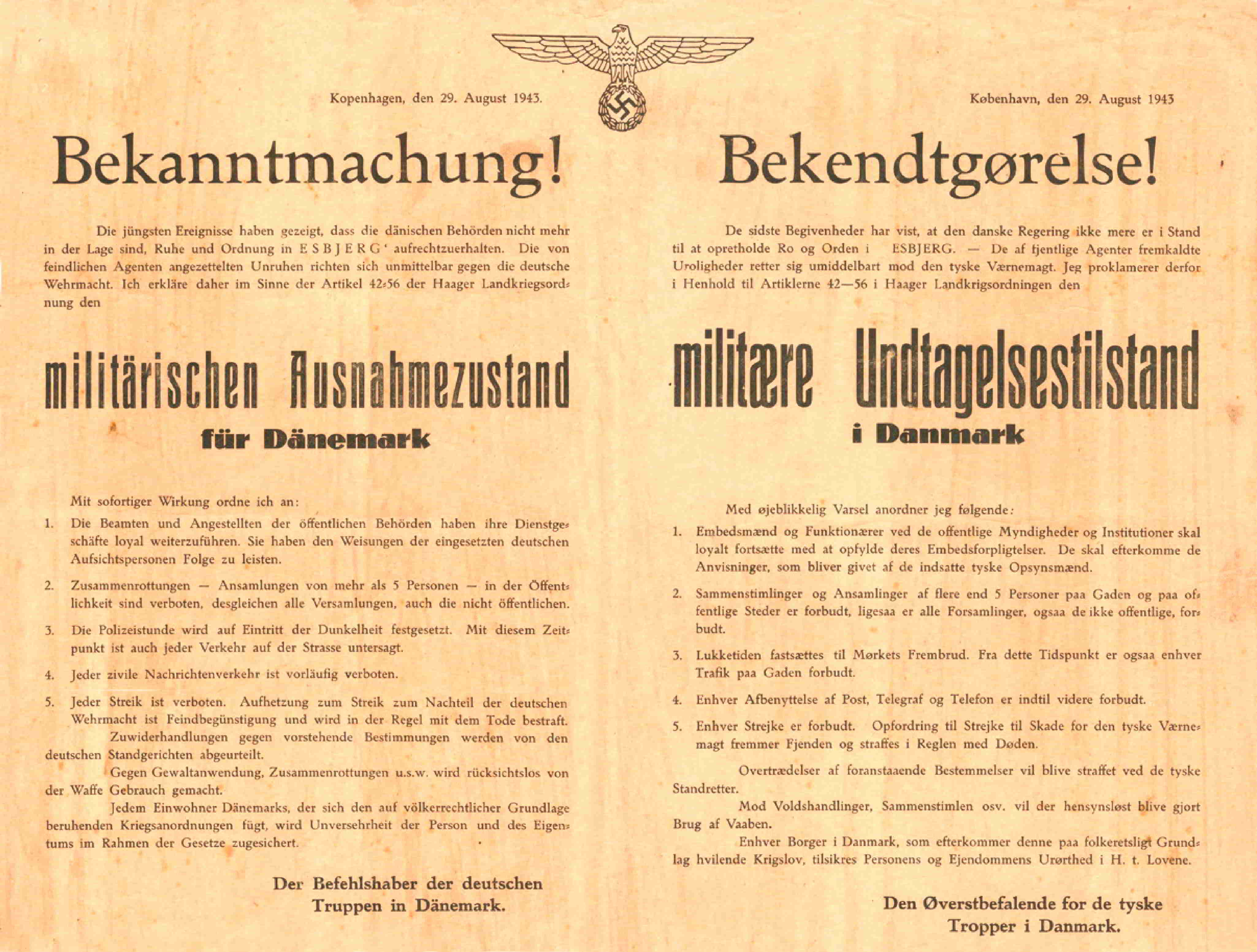 Den 9. april 1940 overflyver tyske flyvere København. Man nedkaster flyveblade over alle større byer i Danmark. Det er et OPROP. Det er skrevet på en blanding af dansk/norsk. Budskabet er dog ikke til at misforstå. Tyskerne fortæller, at de er kommet for at beskytte os mod englænderne, så de ikke besætter landet. Det er faktisk ikke helt ved siden af. Englænderne var netop i færd med en flådeinvasion til Norge i disse dage. Besættelsen skal ses i lyset af den 10-årige ikke angrebsaftale Danmark indgik med Tyskland den 30. maj 1939. Under forhandlingerne om denne aftale indgik i drøftelserne, at hvis Danmark ikke kunne forsvare sin neutralitet så kunne Tyskland yde støtte således, at landet ikke blev angrebet af et tredjeland. Tyskland havde intet ønske om at besætte Danmark. Det krævede ressourcer. Militærtaktisk havde man brug for Ålborg Lufthavn ellers ville det være umuligt at angribe Norge med fly. Der var ingen fly der dengang kunne flyve så langt uden en mellemlanding og optankning. Det var også nødvendigt at have jernbanenettet til rådighed i Jylland, så man kunne komme med sine forsyninger til Norge til felttoget der. Den 9. april 1940 stod der 4.000 tyske godsvogne lastet med materiel parat til afgang til Frederikshavn. Havde man ikke kunnet anvende jernbanen ville det have taget flere måneder at få kørt det hele med lastvogne. Det er ikke muligt, at finde den "rygende pistol" i form af et klart bevis der viser, at Danmark havde lavet en aftale med Tyskland om en fredsbesættelse af Danmark. Her viser kendsgerningerne i det faktiske hændelsesforløb, at det må have været tilfældet.