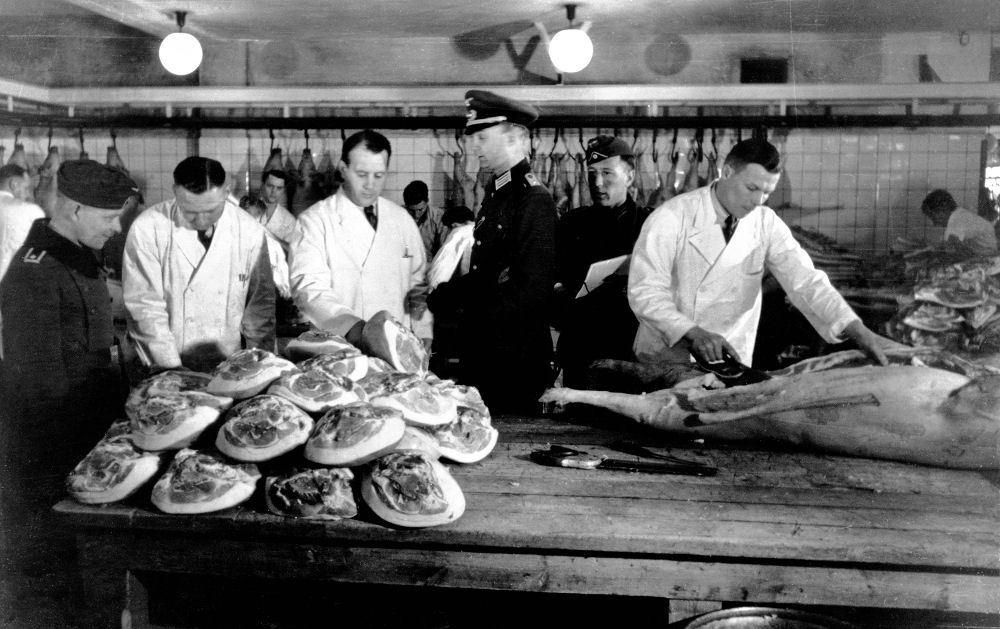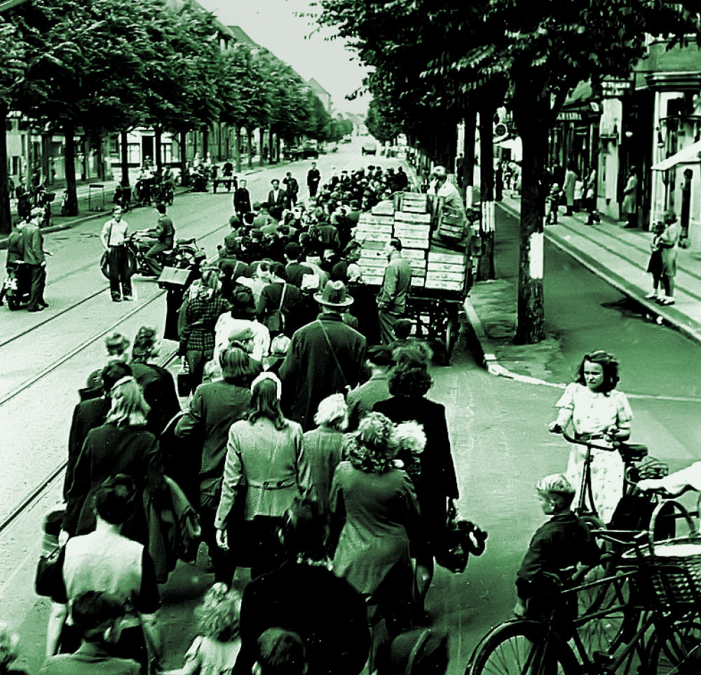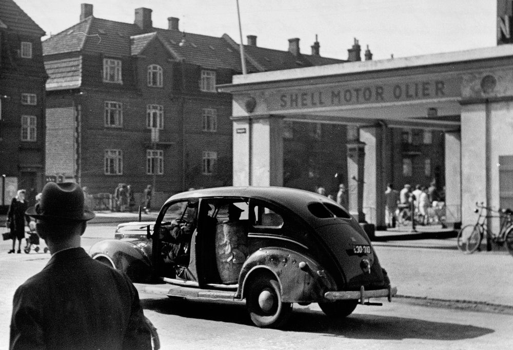 Som leder af modstandsorganisationen Frit Danmark indtog Mogens Fog en central position i modstandsbevægelsen. Her hilser han på lederen af angrebet på Shell-huset. Kun ved et svineheld lykkedes det Fog, at slippe ud sin celle og springe ud fra stor højde af den brændende bygning - et mirakel - mange havde meget gerne set, at han var omkommet. I baggrunden ses admiral Wedel. Han spillede en afgørende rolle i sænkningen af den danske flåde den 29. august 1943 - en begivenhed der løb over hele verden og var medvirkende til Danmarks anerkendelse som allieret. Flådens indsats er vi stolt over, officererne handlede på trods af politikerne, de kunne måske have smadret mere materiel på land, men kan vi blive enige om, at de gjorde trods alt noget. På trods af regeringens uudtalte ordre gav admiral Wedel alligevel ordren: Sænk – og de sænkede flåden. (Foto: Arbejdermuseet & ABA) Dette resultat med anerkendelsen, har vi modstandsbevægelsen, at sige tak for. Det var de helt ganske unge, der tog kampen op og mange gav livet i en aldeles ulige kamp ligesom mange fik for resten af deres liv skader på sindet og mange blev aldrig blev hele mennesker igen. Tyskerne har umådelig gavn af samarbejdet. De levnedsmiddelleverancer fra landbruget og fiskeriet vi leverer til Tyskland vurderes af eksperter til at have medført at verdenskrigen varede næsten et halvt til et helt år længere end nødvendigt. Det er tankevækkende. Aldrig før eller siden havde landbruget så fede tider. Det er også den primære årsag til at tyskerne giver sig under augustoprøret og folkestrejken i 1944. I polen slog man opstanden ned med militære midler og tabet af menneskeliv var enormt. Til gengæld får vi i varebyttet nødvendige råstoffer fra Tyskland til at holde industrien i gang, det kniber dog med kulleverancerne som vi skal anvende til el- og gasproduktion og opvarmning. Det er en tid med 5 watts-pærer og trappeautomater (trykkontakter med en indbygget fjeder, der efter kort tid afbryder strømmen - et mareridt for en lille dreng, der skulle hente brændsel i kælderen og som var mørkeræd), tørvegravning og rationeringer af el, gas og varme. Det var en kold tid, da jeg blev født. Bilerne var klodset op og lastbilerne kørte på generatorbrænde. Benzin, olie og petroleum var ikke til at opdrive det samme gjaldt cykeldæk, så man forsøgte at montere korkpropper på fælgene. Der går næsten 15 år før tingene begynder at blive bedre i landet. Vi kæmper med rationeringer til ind i halvtresserne. Vi har ingen boliger til de unge. De er nødt til gifte sig og få et barn (ofte i omvendt rækkefølge) for blot at kunne få en lille beskeden lejlighed eller blive skrevet op i køen til en sådan. Da min ældste blev gift og fik sit første barn måtte hun og hendes mand tage til takke med et lejet soveværelse i en lejlighed på Nørrebro. Da barn nummer to var på vej greb min far ind. Hans fars søster var gift med en højesteretssagfører, der administrerede en hel del udlejningsejendomme. Han kunne fluks anvise den lille familie en lejlighed på Amager. Arbejdsløsheden er massiv. Min ældste søsters mand, som var villig til at tage et hvilket som helst job og på hvem hænderne var skruet rigtigt sammen og som var myreflittig, kunne ikke få noget at bestille. Det gik ham voldsomt på. Det havde vi dog lidt gavn af. Han satte mit værelse i stand - det vil jeg aldrig glemme ham for - og byggede til i vore forældres kolonihavehus, så vi kunne være der alle sammen om sommeren. Han gik arbejdsløs i flere år - kun afbrudt af nogle snetegn eller småjobs. Min søster var så heldig, at få et job med at gøre rent i Vor Frelsers kirke på Christianshavn. Der var en frisk præst, der gav hende lov til at tage børnene med på arbejde. Min anden søster var 5 år yngre og blev gift, da tiderne var skiftet. De boede dog på et klubværelse i Ordrup i starten af deres ægteskab. Vi kan ikke købe udenlandske varer for valutaen er reserveret til andre og vigtigere formål. Vi sejler til Sverige og køber ind. Vi lærer at klare os igennem med den smule vi har og det lykkes fordi familierne holder sammen og folk kommer hinanden ved. Derfor er jeg blevet et samlemenneske - jeg nænner ikke at smide noget ud. Jeg gemmer på alt. Skal jeg smide mad ud skærer det i mit hjerte. Jeg er opdraget i en mangeltid. Da jeg kommer i skole er vi 35 drenge i klassen. Mange må have tøjhjælp fra Børnenes kontor. Vi kommer ikke på ferie. Vi har Gabriel Jensens ferieudflugter (og det er faktisk ikke så ringe endda). Nogle børn kommer på svagbørnskoloni (bemærk udtrykket). Der er spisning på skolen fordi en masse børn ellers ikke ville få noget at spise til frokost. Vi kan få gratis mælk. Vi får udleveret levertranspiller og c-vitaminpiller til frokost. Vi går i bad på skolen. Vi har nemlig ikke bad hjemme. Det er begrænset hvor meget man kan bade i en køkkenvask, når man er 2 voksne og 3 børn i en lille lejlighed. Vi kommer til lægekontrol på skolen og vi har på min skole en fast sundhedsplejerske. Vor legeplads er gårdene mellem skraldebøtter, cykelskure, pigtråd og gårdtoiletter. Rotter er ikke noget ukendt begreb for os. Mange af os tørrer rumpen i avispapir, som man må nulre og nulre, hvis det skal være anvendeligt til det påtænkte formål. Aftensmaden er tunge solide retter: Suppe i flere dage, brunkål med flæsk, risengrød og klatkager, øllebrød, blodpølse. Frikadeller, medisterpølse og fiskefrikadeller. Min kost er mere varieret - min far er bager og kan skaffe forsyninger fra bageriet. Vi spiser os gennem et hav af æggekager og omeletter fordi bageriet får leveret så mange klinkeæg, der skal spises her og nu. Vi har ikke noget køleskab, men et flueskab. Vasketøj tager for min mor hele 2 dage, når det er hendes tur i vaskekælderen. Vort legetøj kan være i et hjørne af en skabsskuffe. Sodavand er noget vi får en af til festlige lejligheder, som fød
