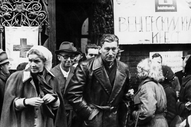 Informationsstøtten, professoren og modstands-manden Erik Husfeldt leverede oplsyninger til CIAs forgænger, kom dette i går frem under forsvaret for en ph.d-afhandling. Her er det tidligere medlem af Frihedsrådet og formand for Informations repræsentantskab fotograferet i Ungarn under opstanden mod Sovjetunionen. Foto: Scanpix
