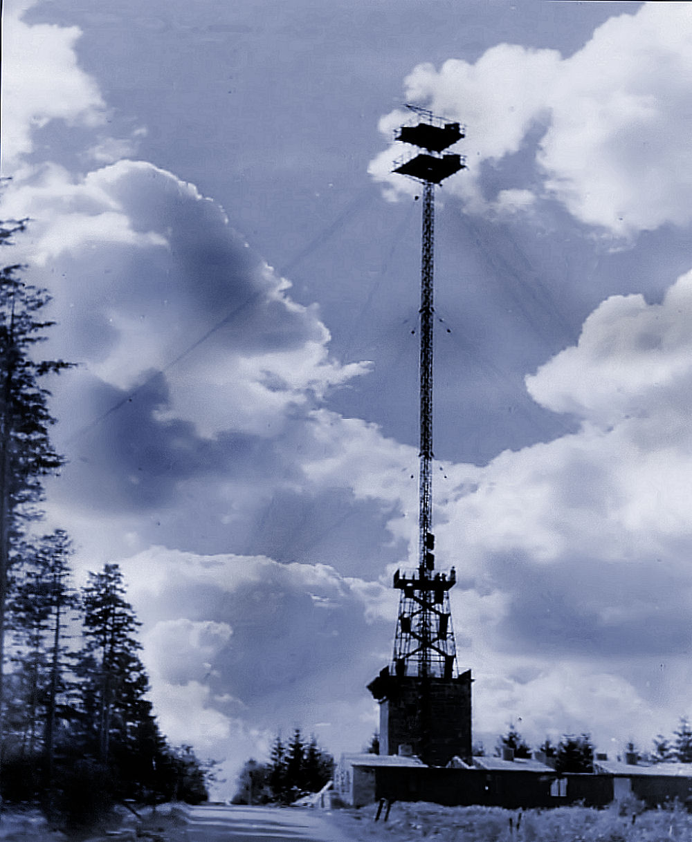 Her er vi ved Rytterknægten på Bornholms højeste punkt i Almindingen, der er et skovområde. Det er Danmarks tredje højeste punkt på 162 meter. Granittårnet, der er et udsigtstårn er på 12,6 meter fra , men tyskerne byggede et tårn kaldet "tyskertårnet" på 60 meter ovenpå. Nu havde man et toppunkt på 234,6 meter. Radiotårnet er senere fjernet. Hvad er det så tyskerne så har etableret her. Det er et radiokædetårn med et VHF-sender og modtager. Den havde forbindelse med en tilsvarende radiokædestation på Rügen. Den teoretiske rækkevidde er 4 gange kvadratroden af højden af sendeantennen + 4 gange kvadratroden af højden af modtagerantennen - resultatet er i kilometer. Resultatet man når til kan tillægges 30% grundet jordens krumning. Hvis vi regner med at modtagerantennen på Rügen har haft et toppunkt på 100 meter når vi til følgende resultat: 4x15 meter + 4x10 meter. Det giver lige 60kilometer og 40 kilometer hvilket giver 100 kilometer og her kan så tillægges 30% lig 30 kilometer. Det vil sige man kan have forbindelse over 130 kilometer 24 timer i døgnet. Systemet indrettes på den måde, at man på den samme bærefrekvens stabler helt op til 8 forbindelser oven på hinanden ved at reducere frekvensområdet for hver kanal til et reduceret talespektrum og ganger de enkelte spektre op. Det kræver præcis indstilling af udstyret med et hav af lavfrekensfiltre og doblere, triplere og så videre, hvis det ikke skal lyde som "Anders And". Så her har man haft mulighed for 8 duplex-telefonkanaler, som fjenden ikke kan lytte med på, da man anvender ekstremt retningsbestemte antenner, så man skal op i "strålen" for at lytte med. Min viden om sådant udstyr har jeg fra min millitærtid på Bornholm ved telegraftroppene. Jeg var under min værnepligtstid på Bornholm medlem af Eksperimenterende Danske Radioamatørers lokalafdeling i Rønne. Vi holdt til i et klubhus på Galløkken, der ligger på sydkysten umiddelbart øst for Rønne. Her havde jeg med min 40 watts 2-meter sender i VHF-båndet og 2 stakkede 7-elements yagi-antenner i en toppunktshøjde på omkring 50 meter ofte en fin forbindelse til en tilsvarende amatørstation, der kørte ud mobilt på Aborrebjerg på Møn. Det var i øvrigt morsomt, at første gang jeg var her, havde vi bankospil. Jeg fik både 1. og 2. anden præmien med hjem. Samme aften blev jeg gode venner med en jævnaldrende amatør, han boede på Rønne Amtssygehus, hvor hans far var læge. Hans far kom senere til at undersøge mig for nyresten og behandle mig for dem. En anden ting var, at næsten alle amatørerne i klubben havde været eller var tjenestegørende ved forsvaret ved en eller anden form for radiokommunikation. Det kunne være på Dueodde, Centralradioen i Åkirkeby, Flydetachementet, Jomfrubjerget, TV- og radiosenderen i Årsballe o.s.v. - jeg husker tydeligt OZ4FF - Karsten, som var formand og OZ4OV, som nu var udstationeret på Bornholm med kone og barn for flyvevåbnet. De var de dygtigste og kvikkeste radiotelegrafister jeg har mødt i hele mit liv. Jeg var i øvrigt den eneste fra Almegårds kaserne, der var medlem. Jeg fik i øvrigt min licens på Bornholm og valgte OZ4WW (OZ4 viser, at jeg var bornholmer - altså ikke indfødt, men boede der).