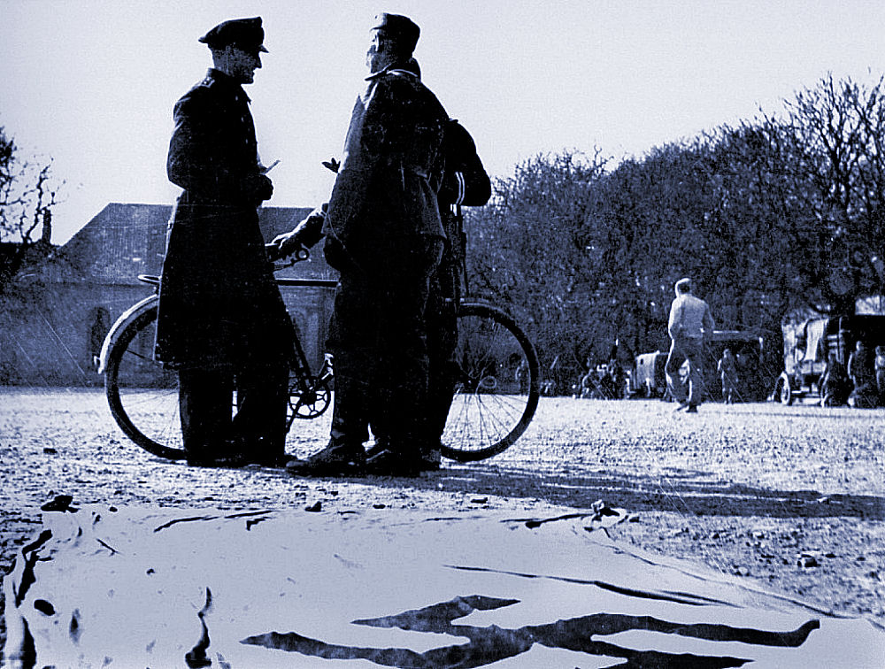 Under besættelsen var det lykken at have en cykel. Man skulle bare passe på den som en smed for ikke at få den skrællet eller stjålet. Gummi var en mangelvare. Det var ikke til opdrive dæk og slanger. Slangerne var lap på lap og man brugte dæklapper. Nogle forsøgte sig med korkpropper på fælgene og nogle viklede halm om fælgene. Læg mærke til, at man kører med frakkeskåner og lukket kædekasse. Her er det også vintervejr. Man havde 48 timers arbejdsuge og arbejdede også om lørdagen. Så man brugte megen tid på at opretholde livet og skaffe til dagen og vejen og få repareret sine ting, da man ikke kunne købe nye. Ja, så gik der tid med det. Godt vi ikke var i krig, så skulle vi også have brugt tid på det.