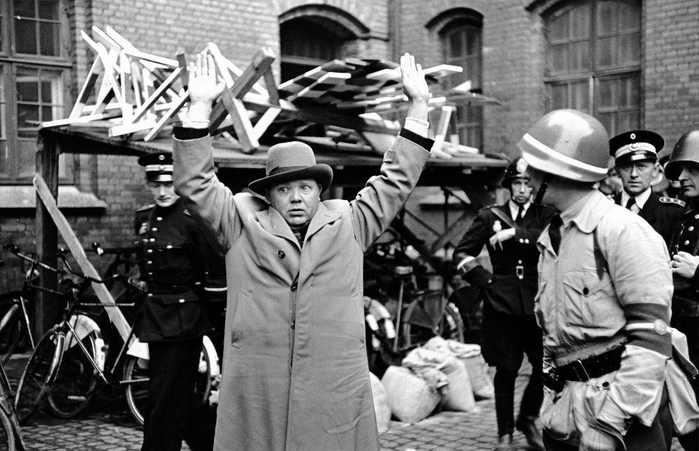 Den 21. maj blev han anholdt og indsat i arresten i Kastellet i København. Den 9. april 1940 var generalløjtnant Ebbe Gørtz taget ind til området omkring kastellet om morgenen fra sin bolig i Hellerup. Hærens general Prior fik besked om tyskernes landgang og forlod kastellet i bil med sin ordonans. Han alarmerede ikke vagten om, at tyskerne var i landet - hæren var ellers i alarmberedskab. Flåden var ikke fordi Admiral Rechnitzer ikke ville det sådan. Prior forlod kastellet og undlad at give vagten besked om hvad han vidste, men beordrede at sydporten skulle forblive åben. Her på kastellet befandt sig hele den danske hærs generalstab - i alt omkring 450 officerer. Her på billedet er generalstaben vendt tilbage til kastellet og nu er det Ebbe Gørtz der regerer her. Han kender så udmærket Werner Best og har været til middage og fortrolige samtaler med ham med ledende socialdemokrater. Så det er en ren luksusinternering Werner Best får her.